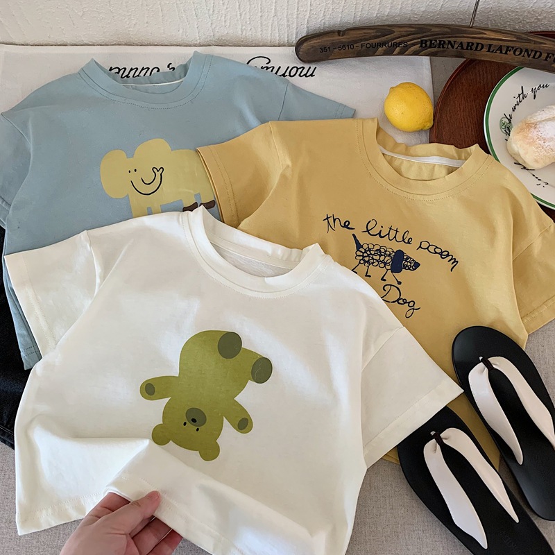 소년 반소매 티셔츠 여름 2025 새로운 어린이 탑 어린이 의류 흰색 반소매 티셔츠 아동베이스 셔츠 여름스토어 가기