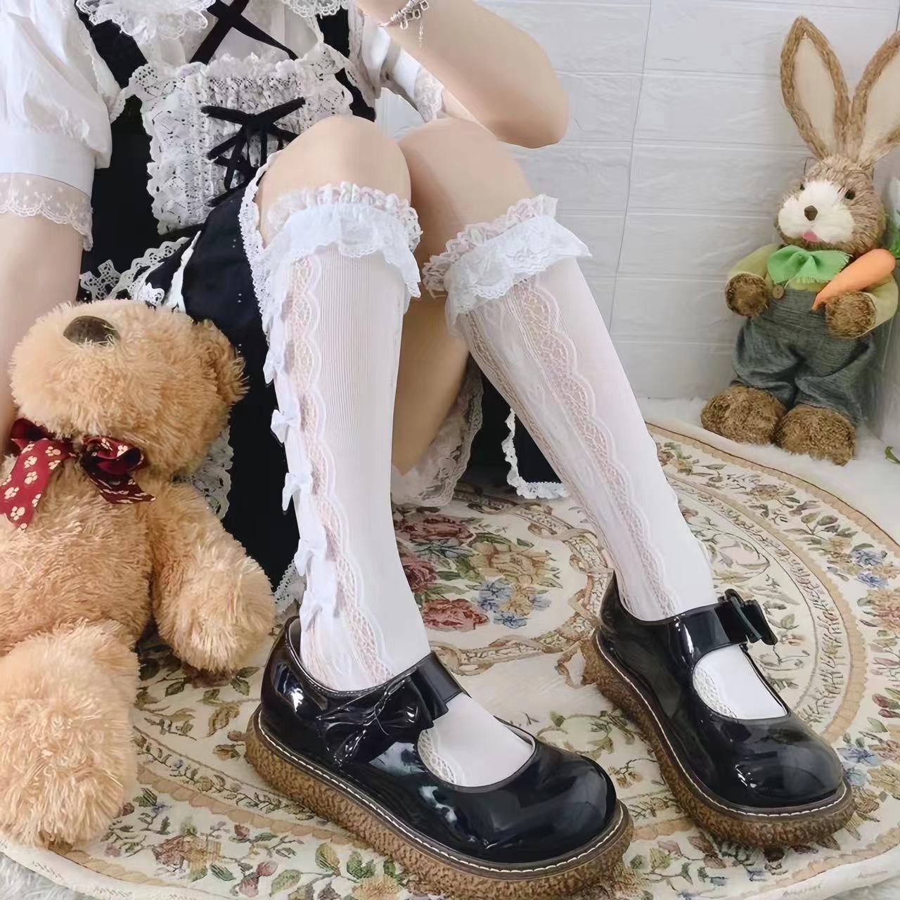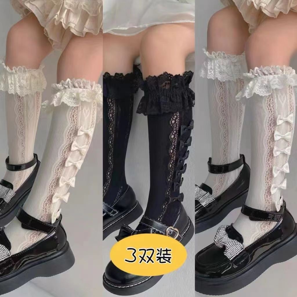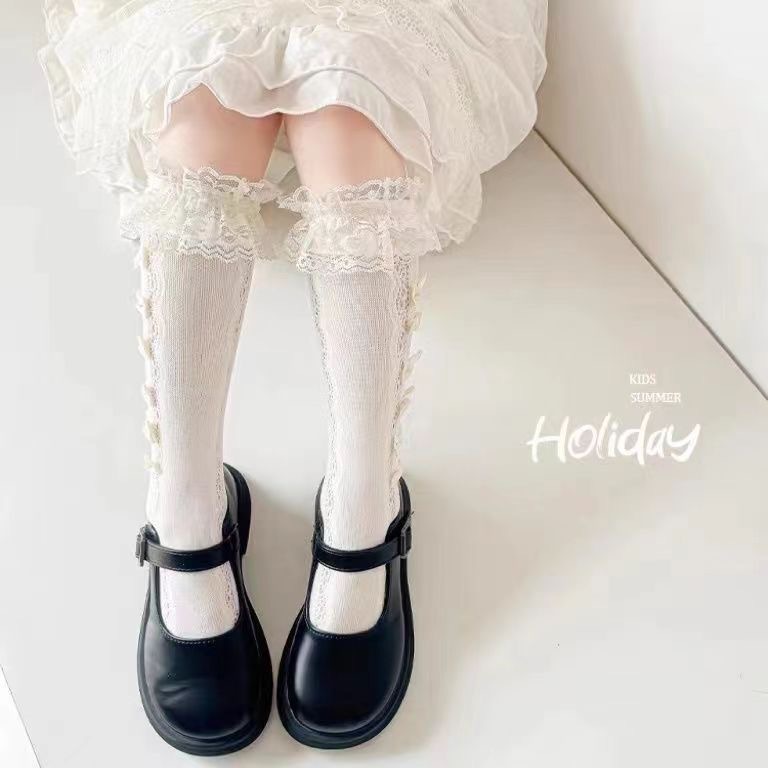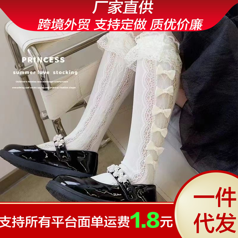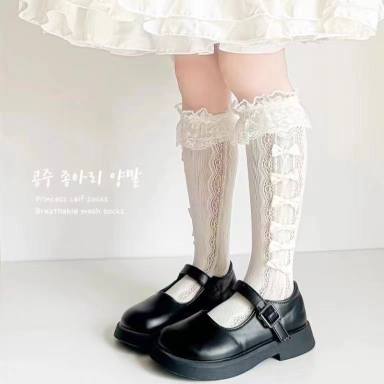 한국 스타일 로리타 공주 귀여운 활 더미 양말 여름 레이스 소녀 새끼 양말 어린이 양말