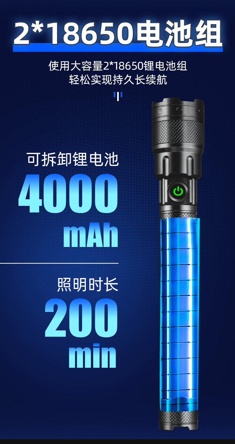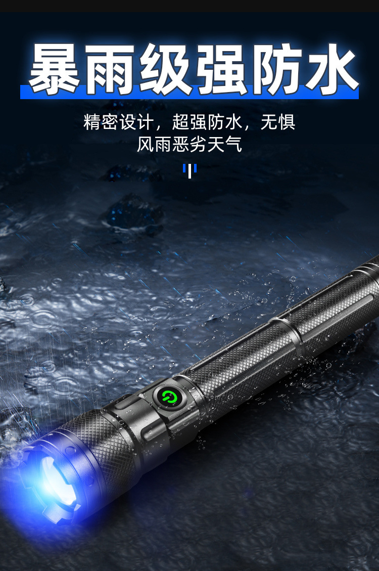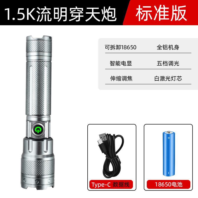 슈퍼 밝은 손전등 강한 충전식 야외 울트라 장거리 레이저 리튬 배터리 수명 긴 알루미늄 합금 새로운 대외 무역스토어 가기