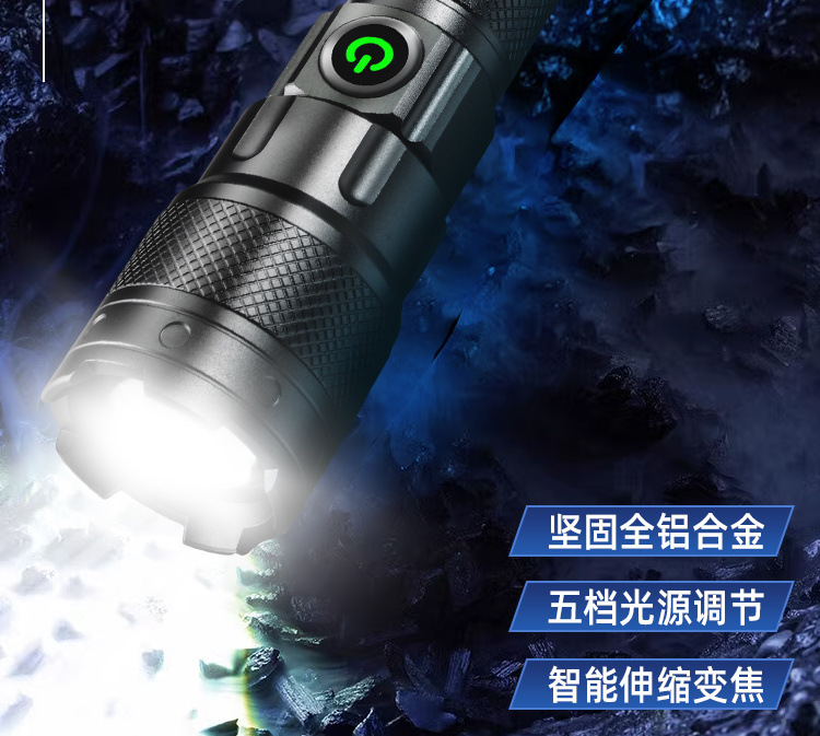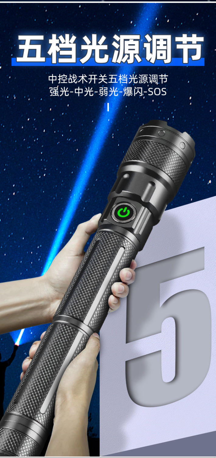 슈퍼 밝은 손전등 강한 충전식 야외 울트라 장거리 레이저 리튬 배터리 수명 긴 알루미늄 합금 새로운 대외 무역