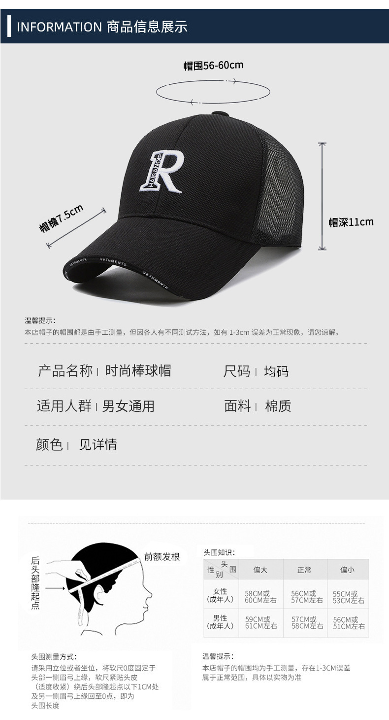 모자 여성의 봄과 여름 자외선 차단 햇빛 통기성 편지 메쉬 야외 여행 등산 자수 남자 야구 모자