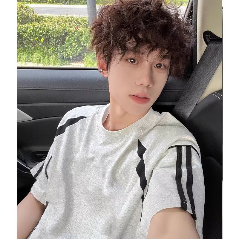 10 대 반소매 라운드 넥 아메리칸 틈새 하이 엔드 센스 단색 단색 반소매 티셔츠 패셔너블 여름 Ins 루즈 스타일