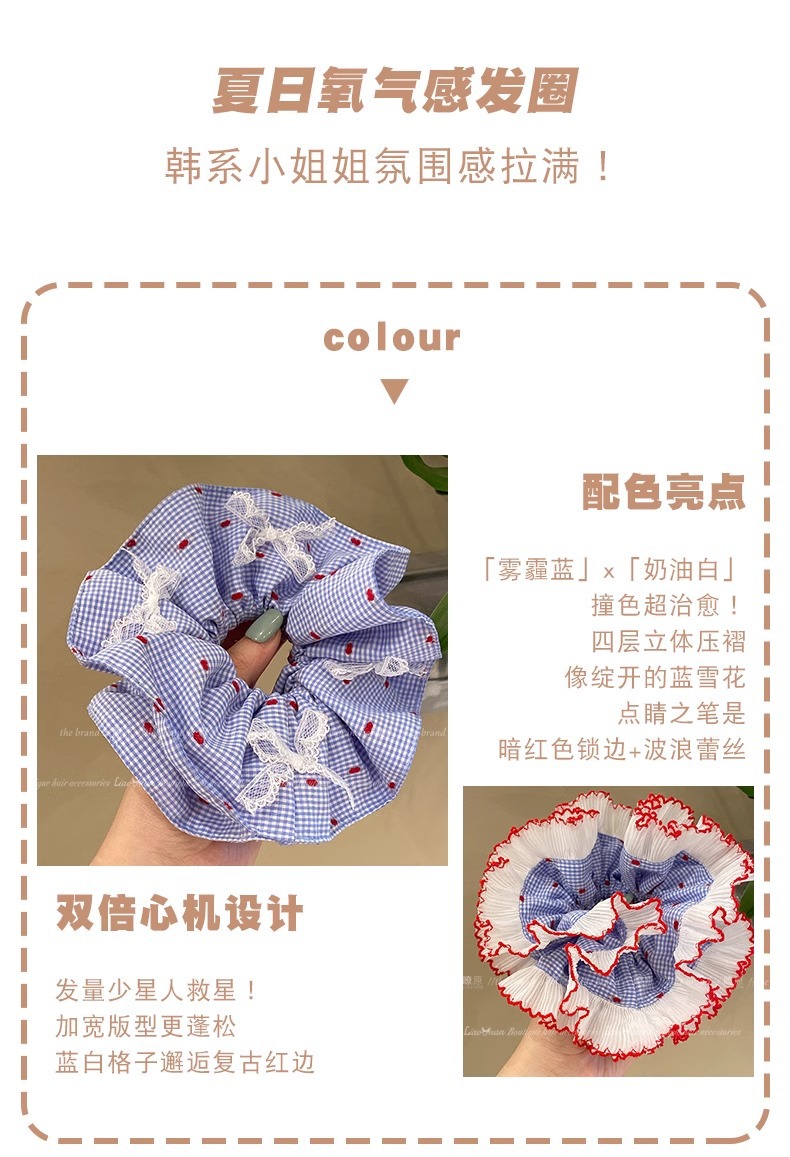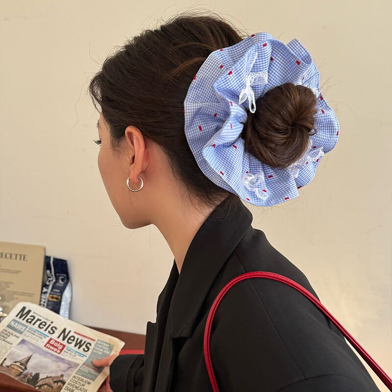 여름 산소 블루 대형 내장 헤어 링 한국 스타일 우아한 레이스 헤드 라인 2025 새로운 하이 엔드 헤드 라인 소녀 고무 텐더스토어 가기