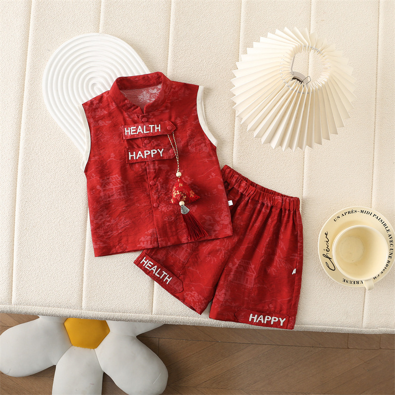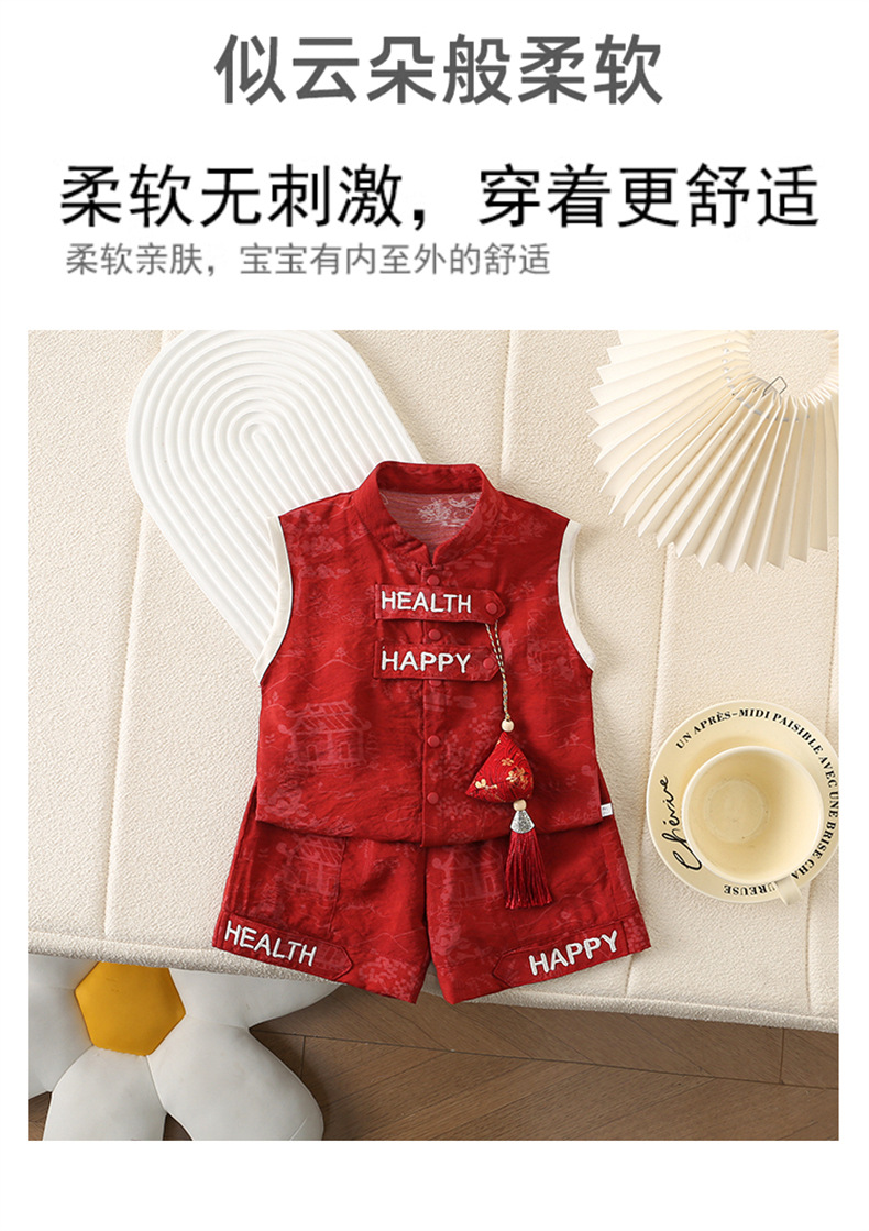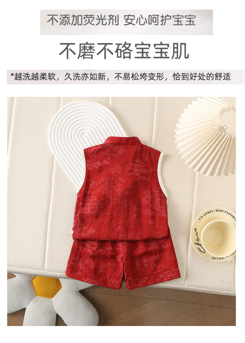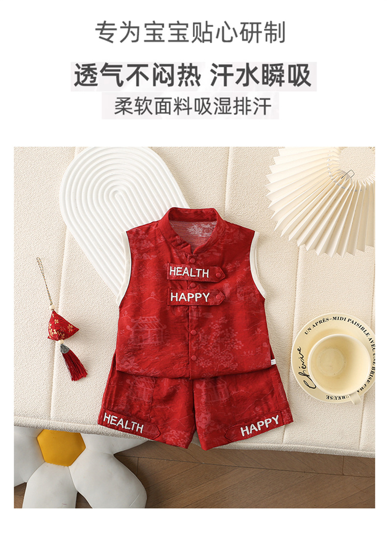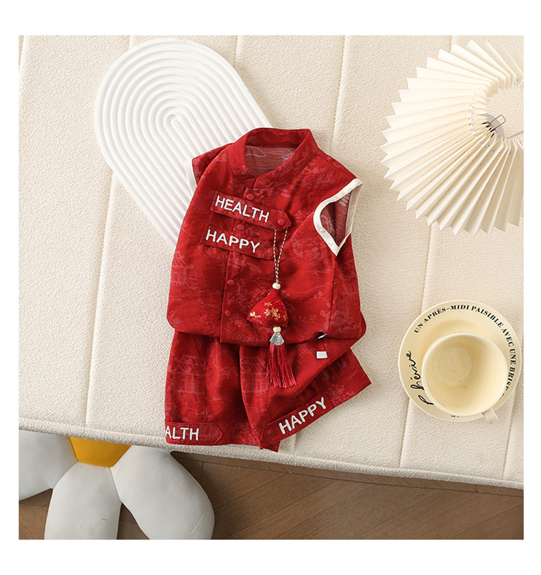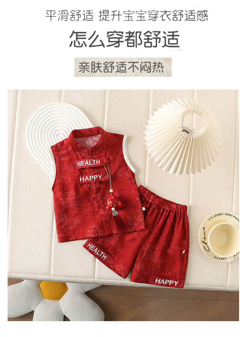 아기 돌복 여름 얇은 민소매 아기 돌잔치 빨간색 세트 백일 아기옷 A급