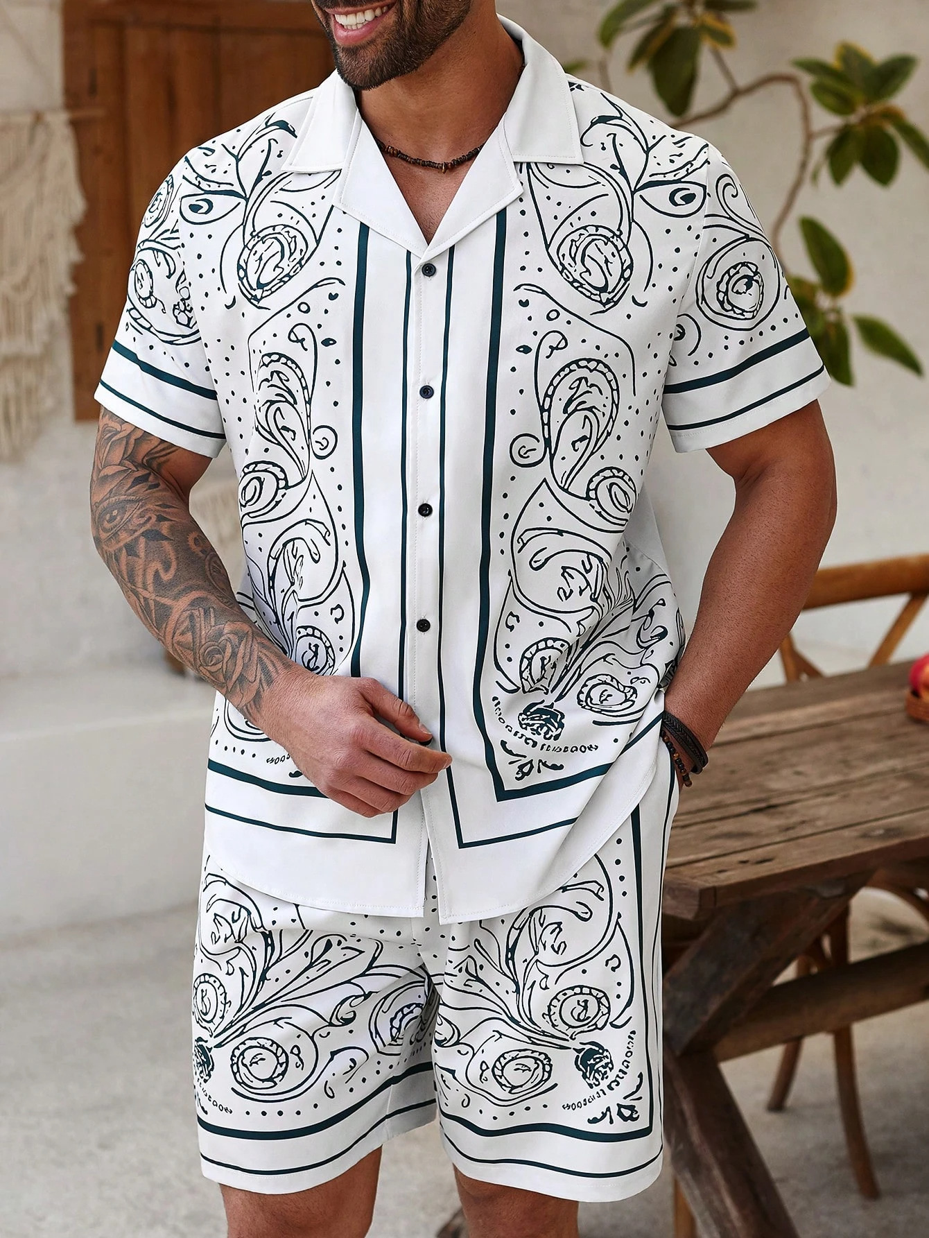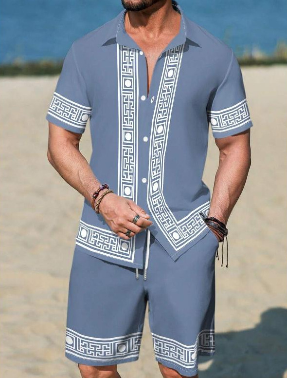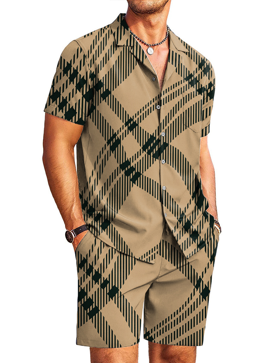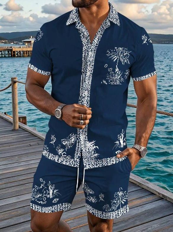 AliExpress 2025 새로운 캐주얼 루즈 패션 고품질 남성 반팔 쿠바 칼라 셔츠 반바지 정장