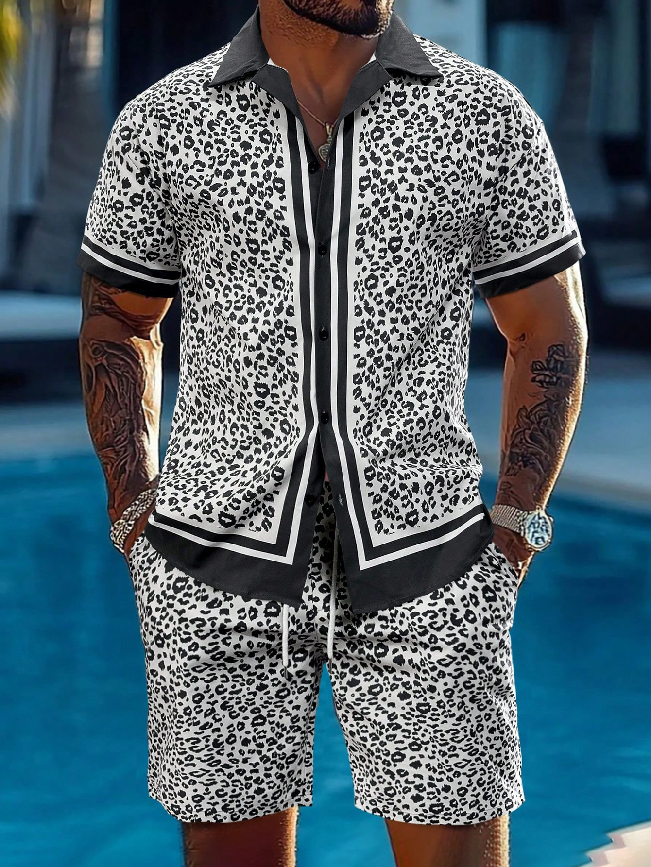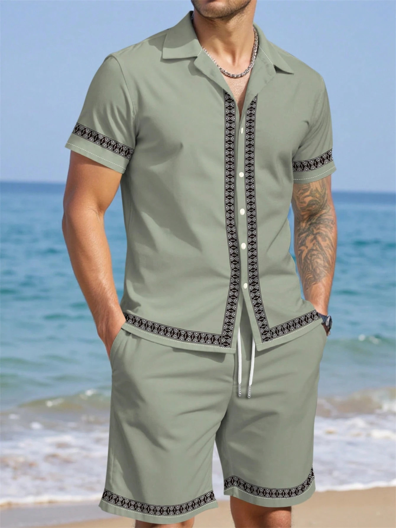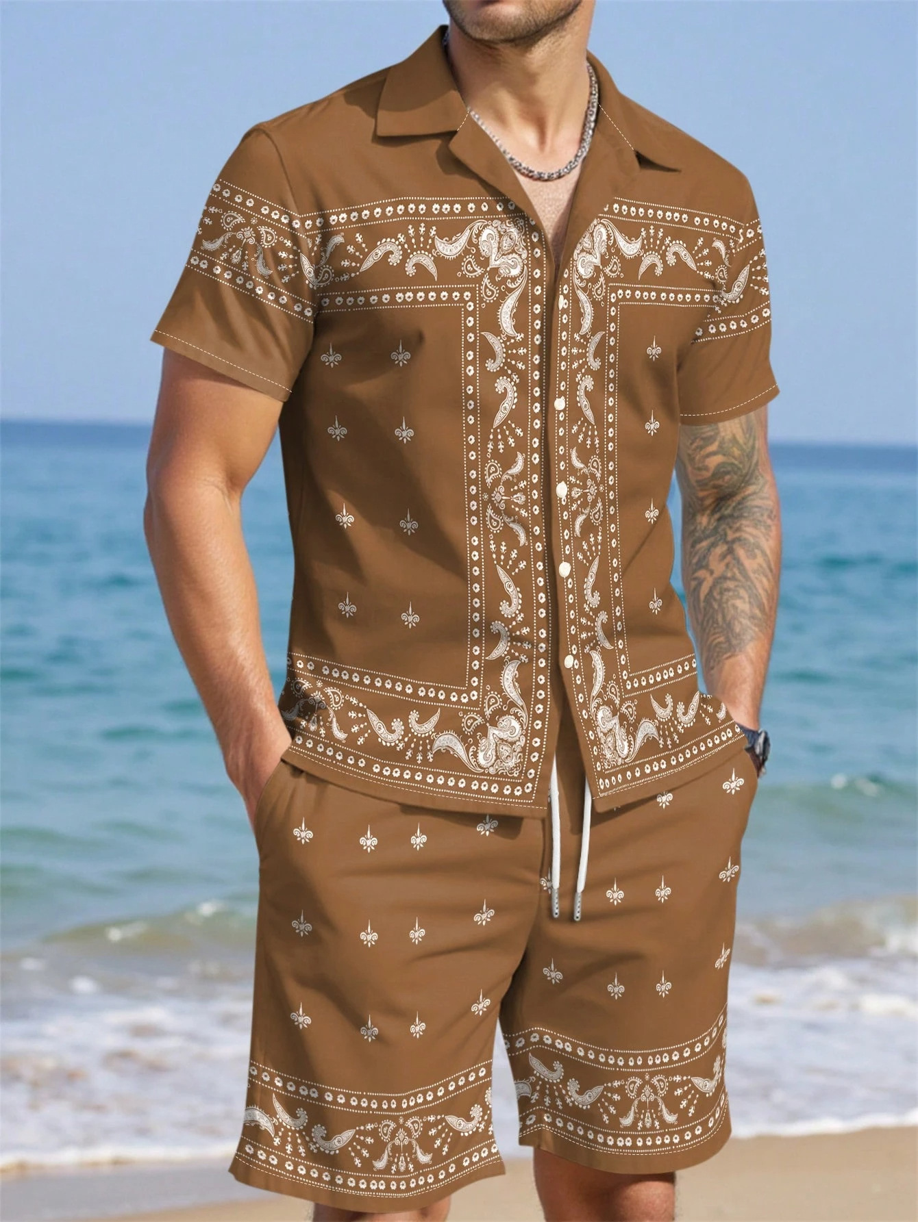 AliExpress 2025 새로운 캐주얼 루즈 패션 고품질 남성 반팔 쿠바 칼라 셔츠 반바지 정장