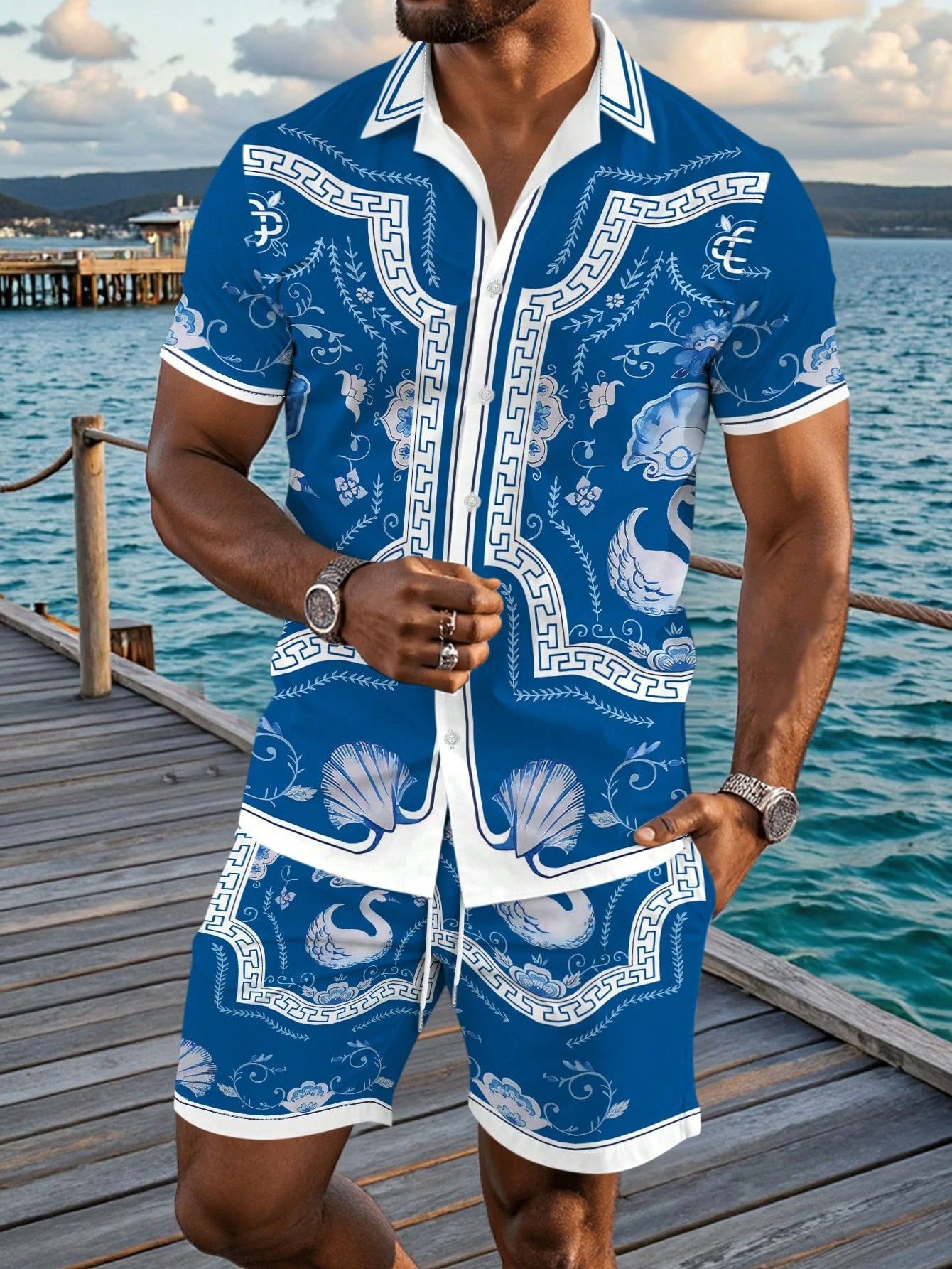 AliExpress 2025 새로운 캐주얼 루즈 패션 고품질 남성 반팔 쿠바 칼라 셔츠 반바지 정장스토어 가기