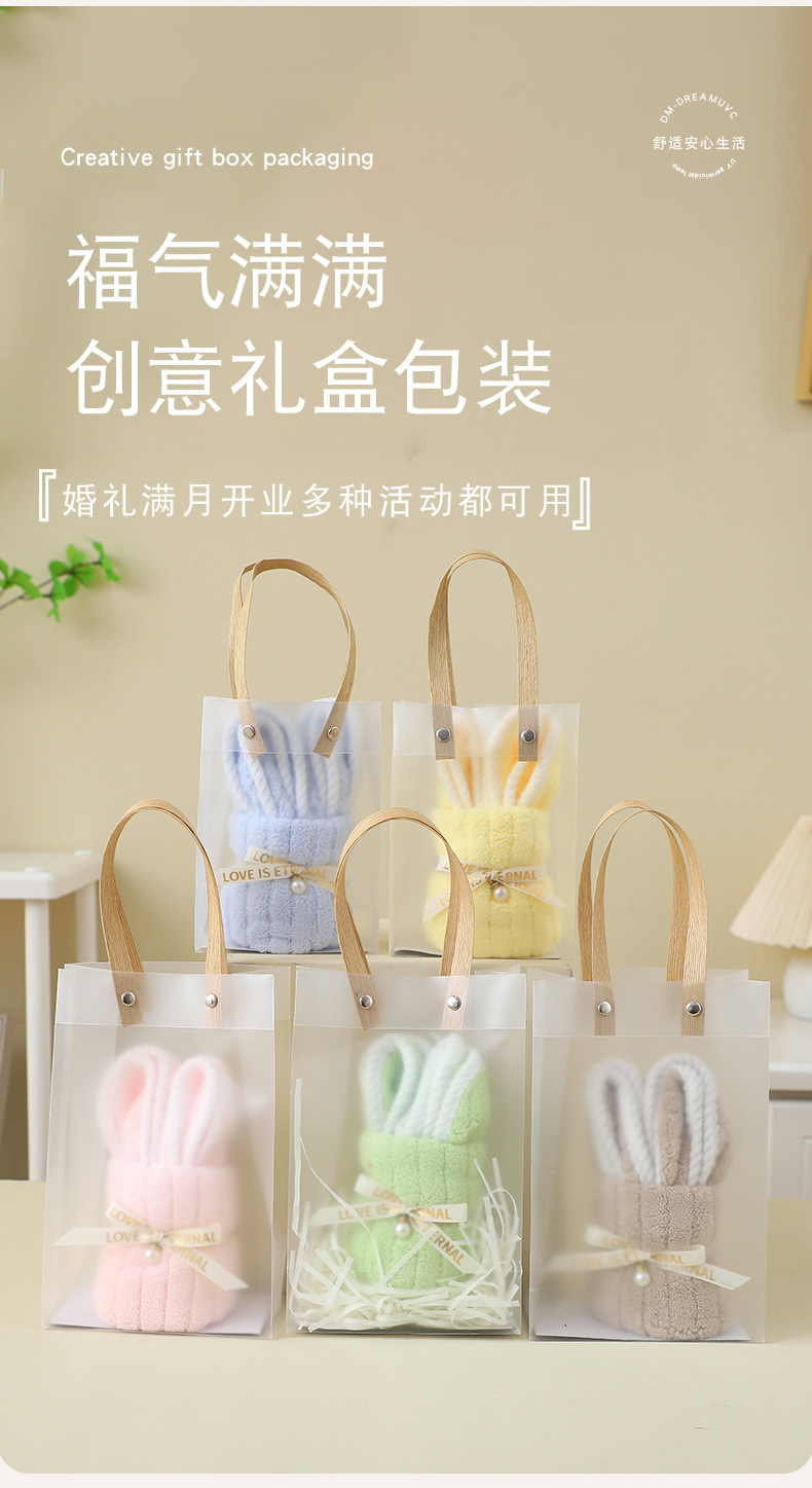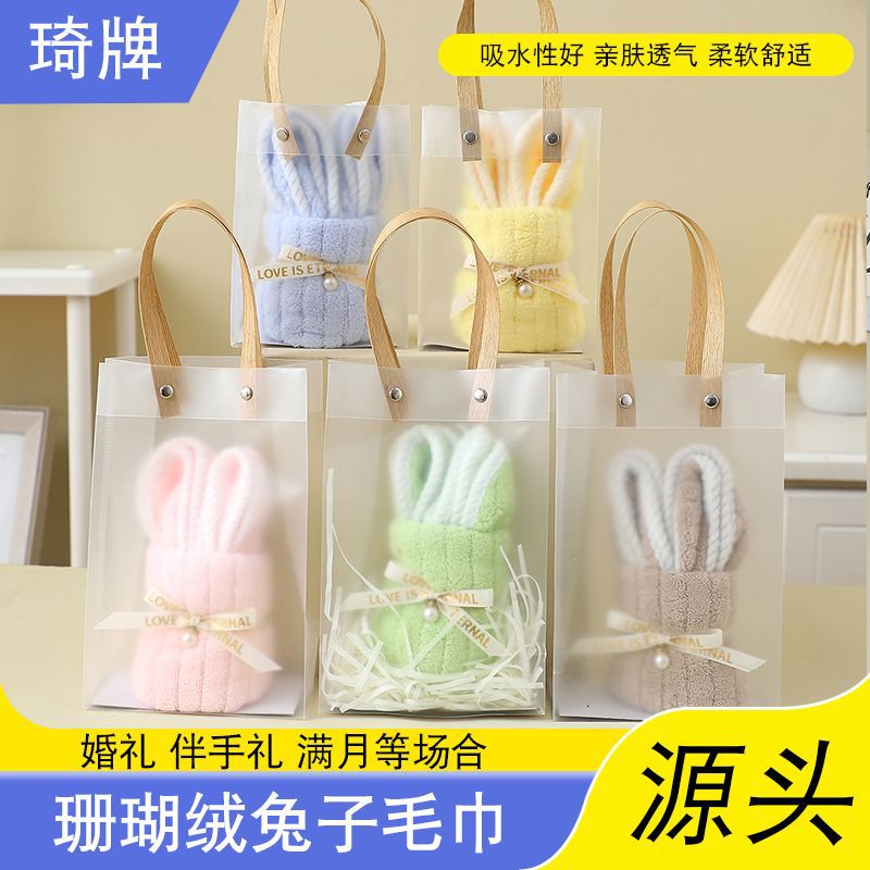 산호 양털 토끼 수건 손 선물 진주 활 토끼 선물 상자 결혼식 축제 활동 오프닝 선물 도매