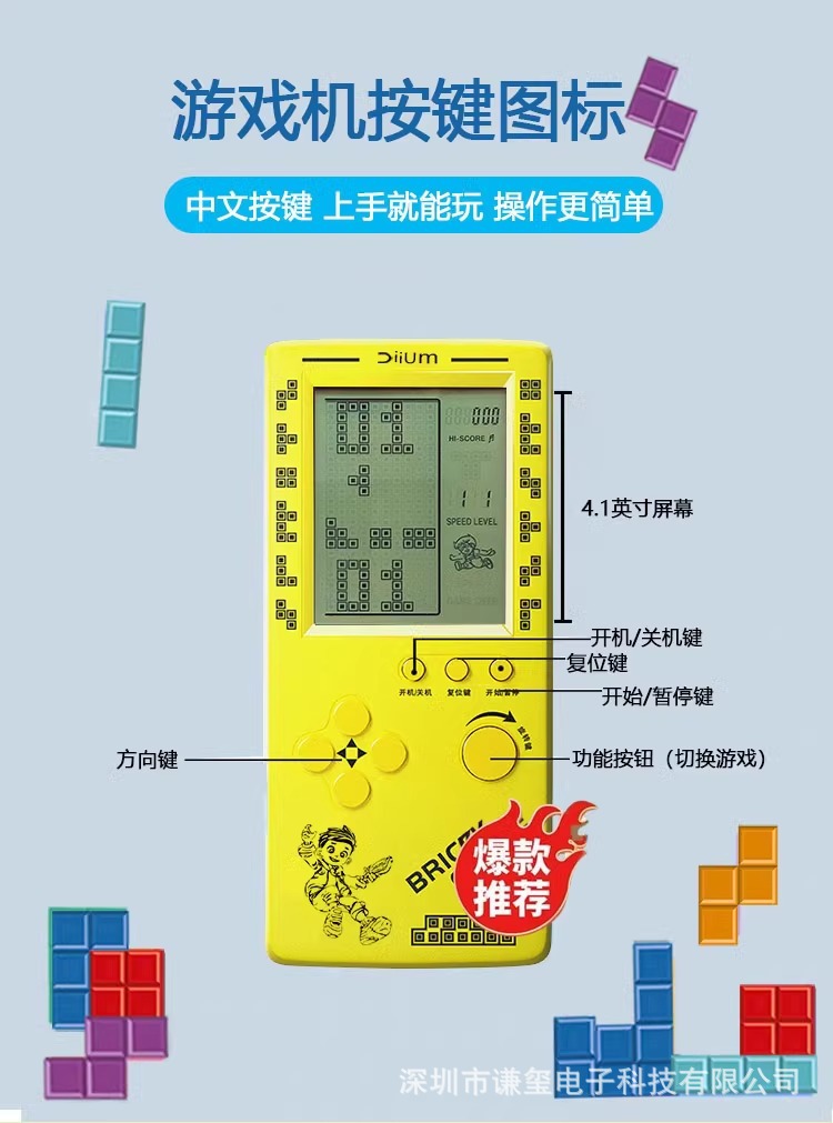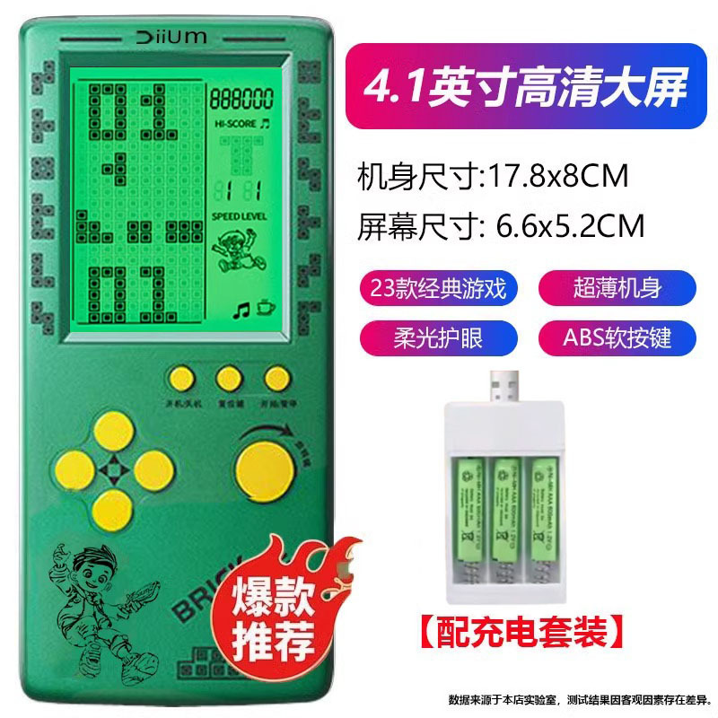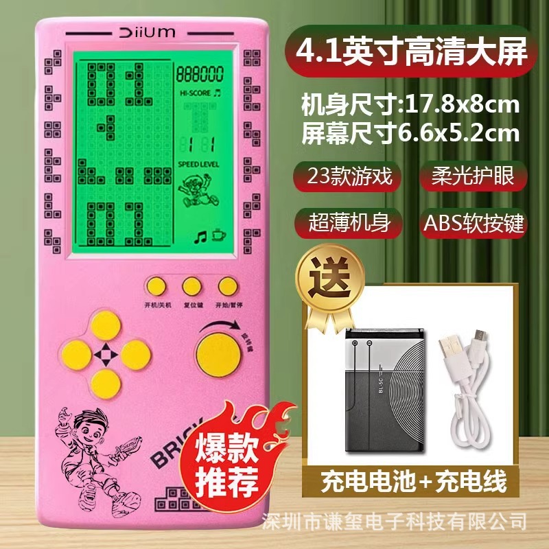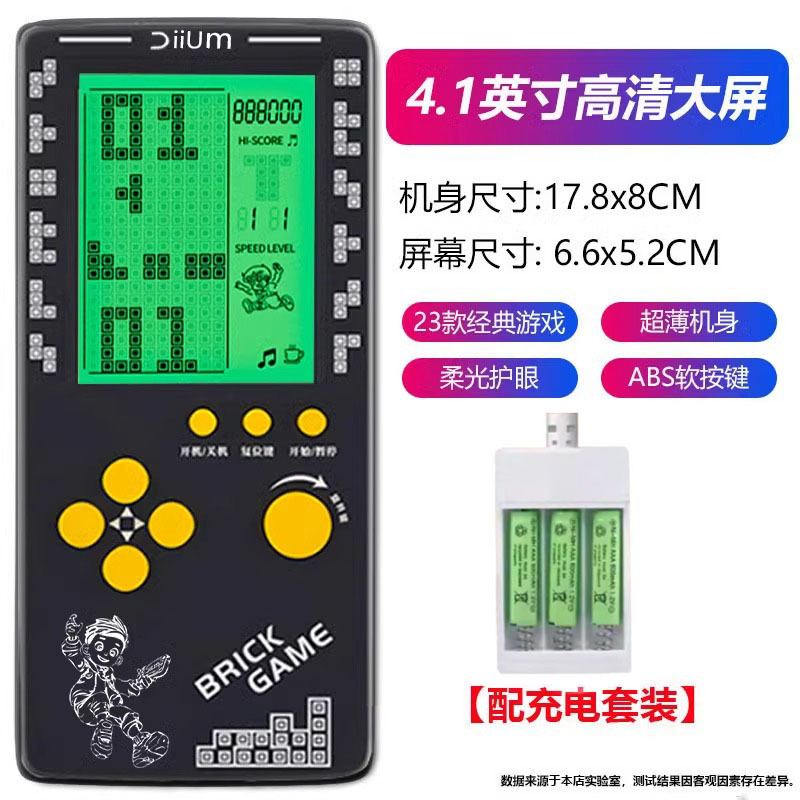 어린이 핸드 헬드 4.1 인치 대형 스크린 전자 게임 기계 충전식 오래된 뱀 테트리스 게임 기계스토어 가기