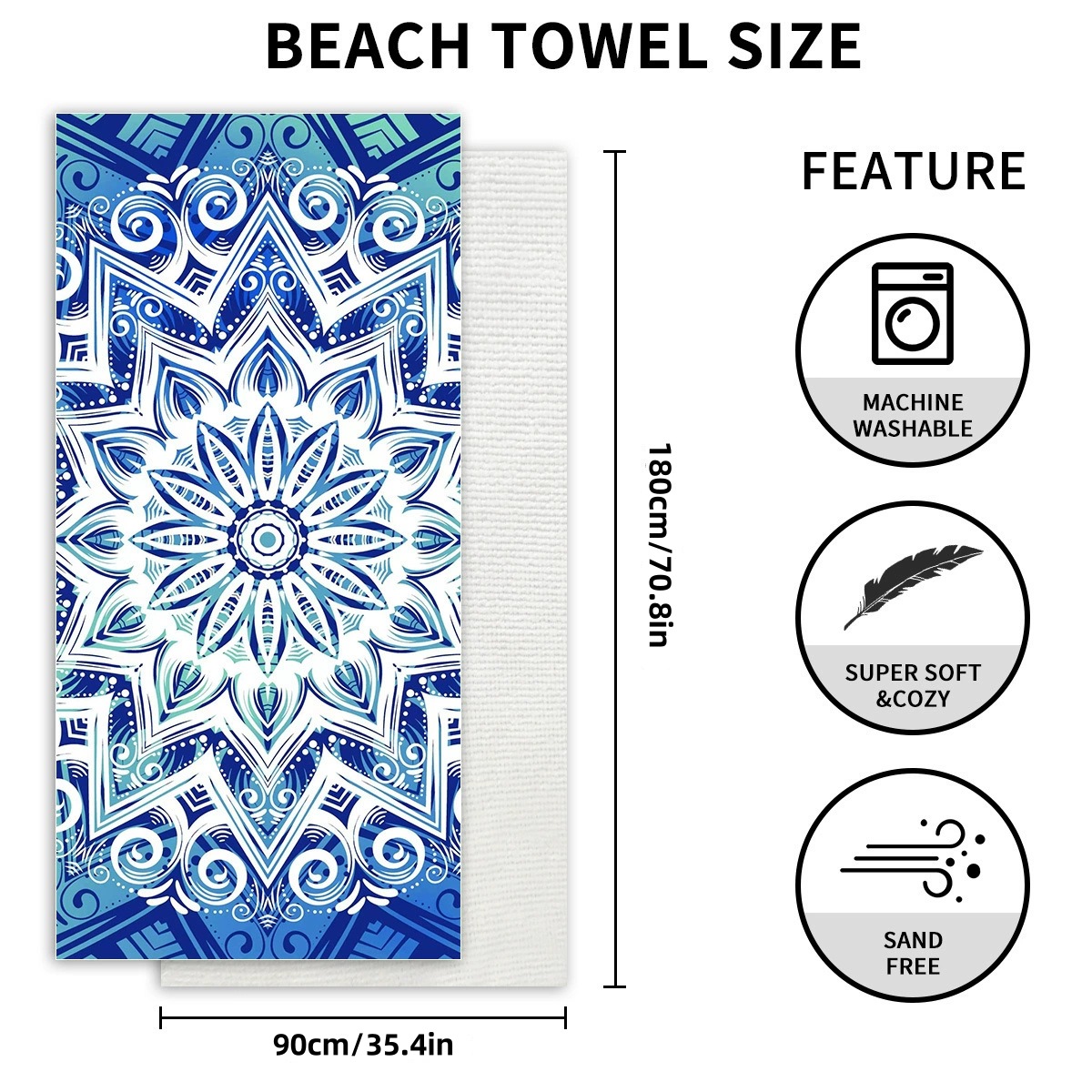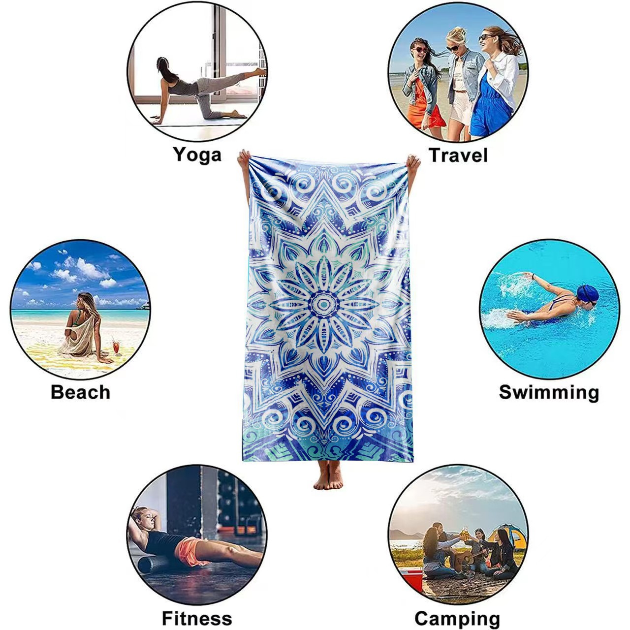 아마존 TEMU 폭발 재고 비치 타월 마이크로 파이버 대형 목욕 타월 빠른 건조 흡수성 해변 수영 타월