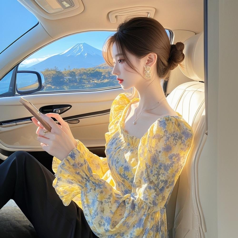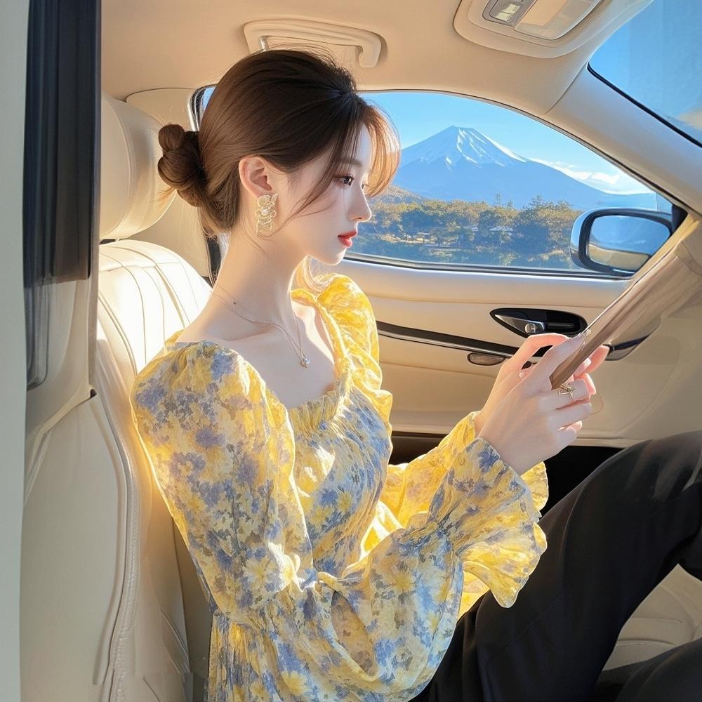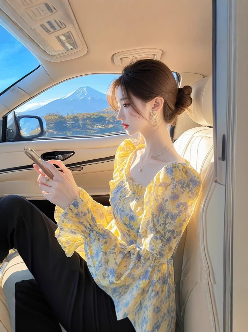 2025 봄 패션 새로운 도착 아름다운 작은 셔츠 고급 고급 연령 감소 세련된 프랑스 노란 꽃 셔츠