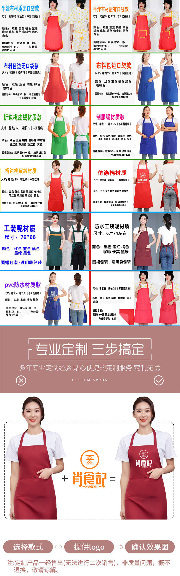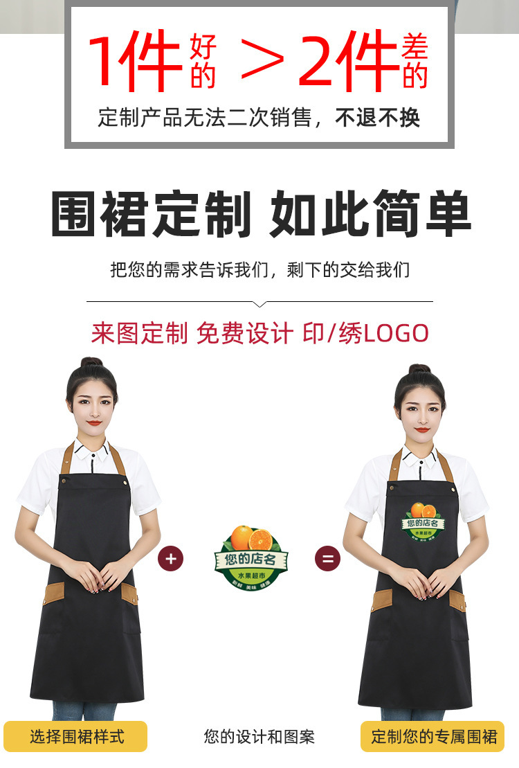 케이터링용 방수 및 방유 앞치마, 맞춤형 로고 인쇄, 커피 및 밀크티 가게, 전골 가게 작업복, 맞춤형스토어 가기