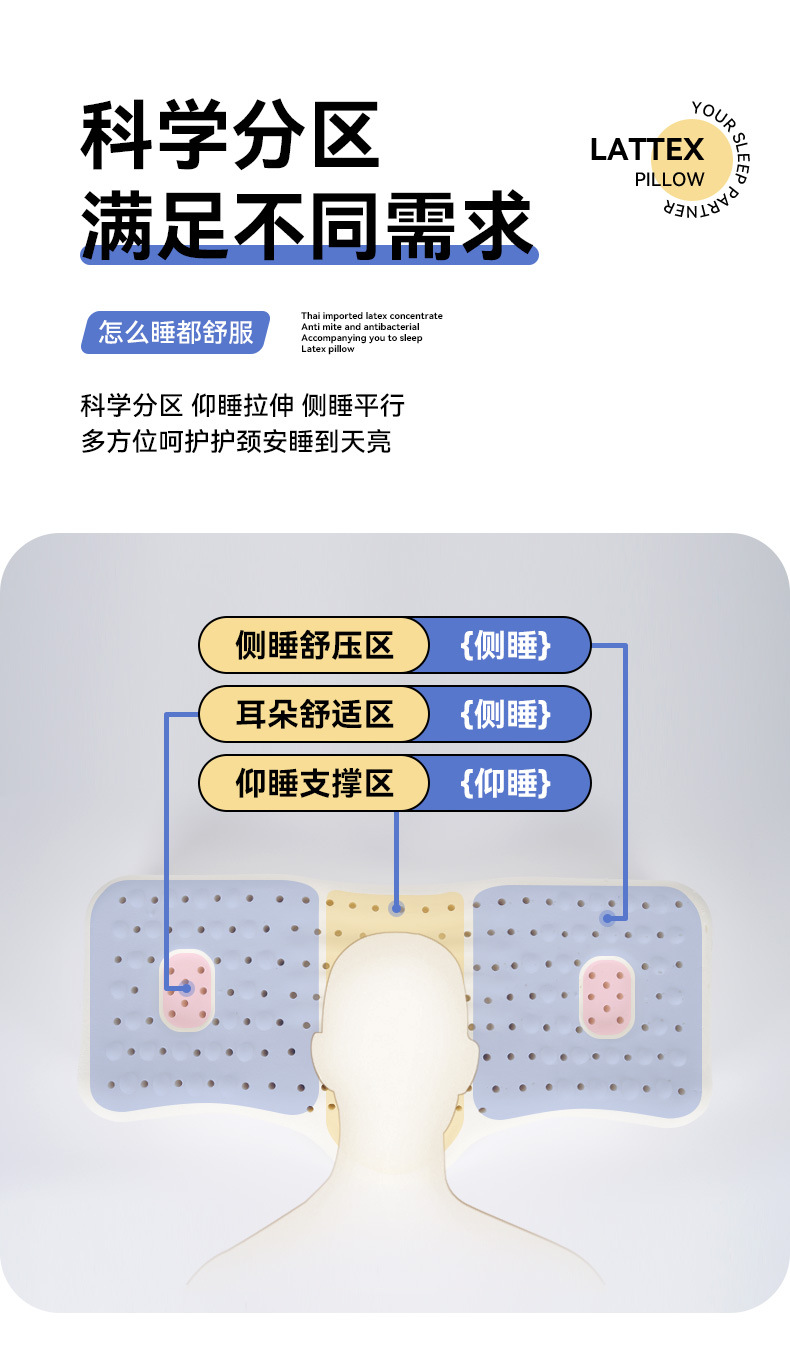 천연 라텍스 베개, 경추 베개, 경추 보호 전용, 수면 보조, 성인용, 특수형 고무 베개심