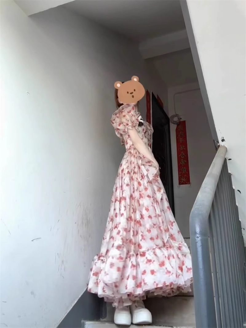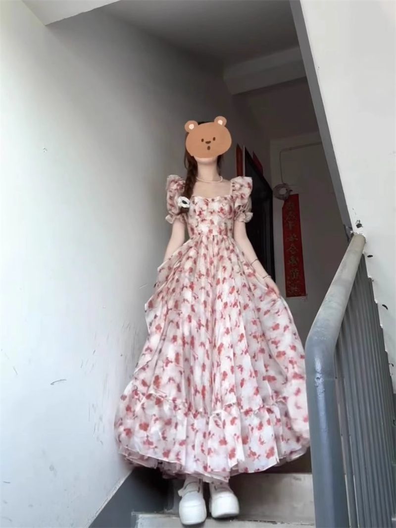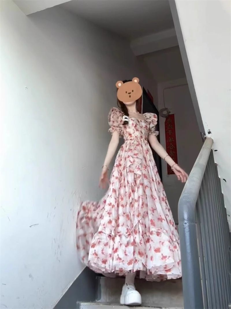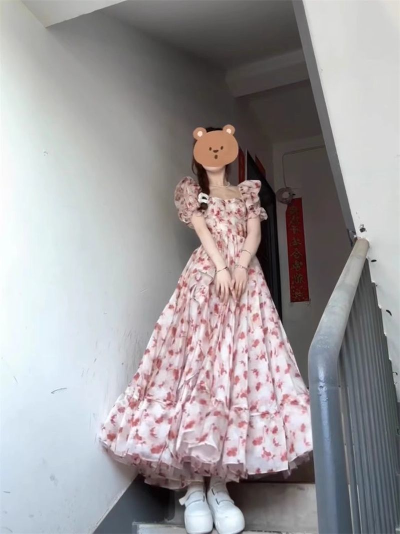달콤한 꽃 어깨 원피스 여성 여름 2025 새로운 부드러운 중간 길이의 공주 스커트 국경 도매 제조 업체스토어 가기
