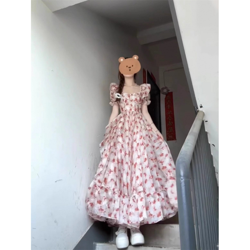 달콤한 꽃 어깨 원피스 여성 여름 2025 새로운 부드러운 중간 길이의 공주 스커트 국경 도매 제조 업체