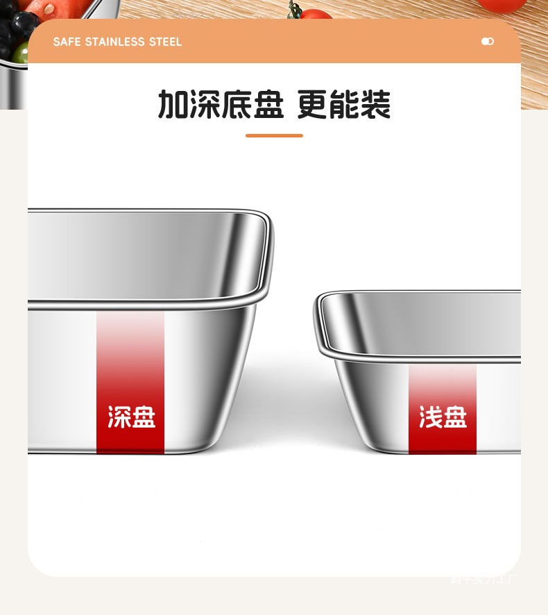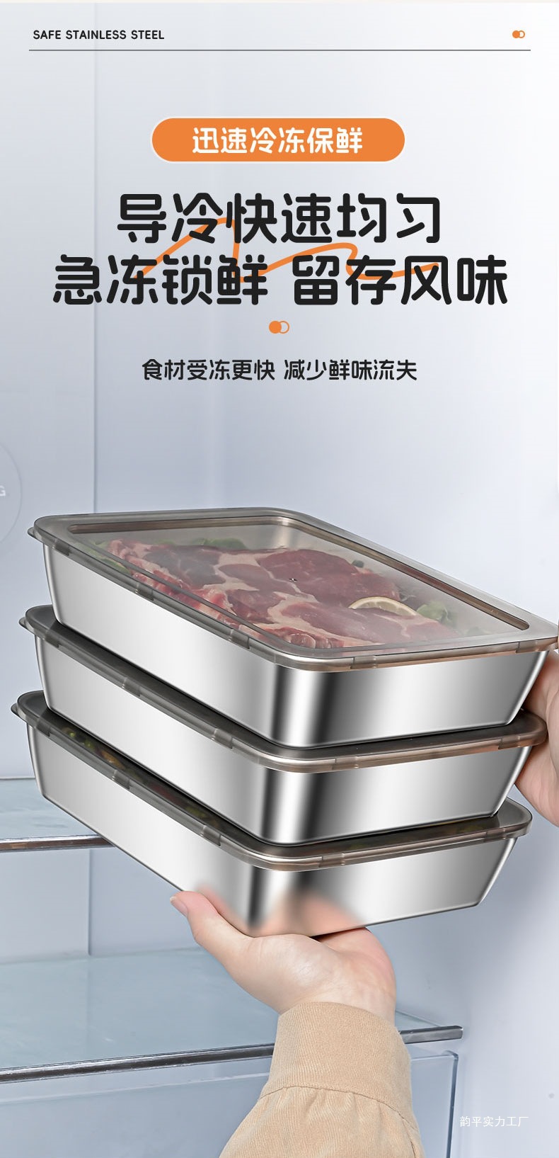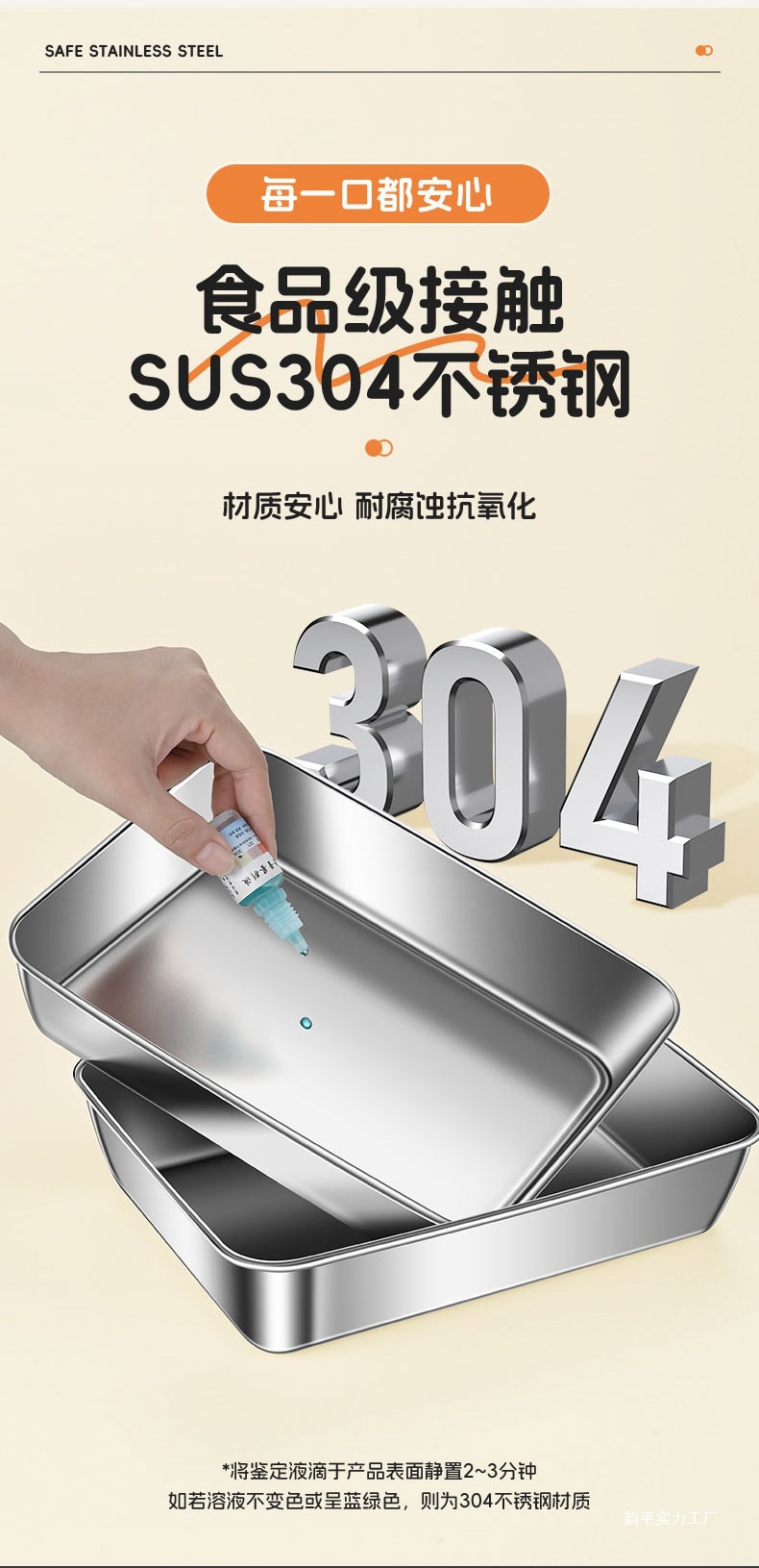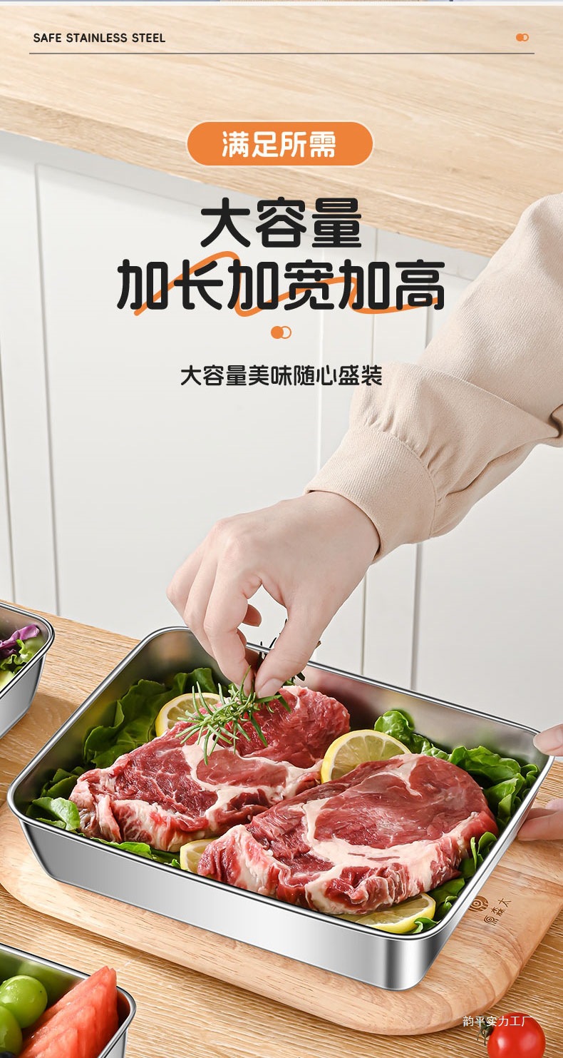 304 스테인레스 스틸 신선한 보관 상자 사각형 접시 냉장고 보관 상자 뚜껑 바베큐 요리 과일 접시 찐 생선 구이 접시