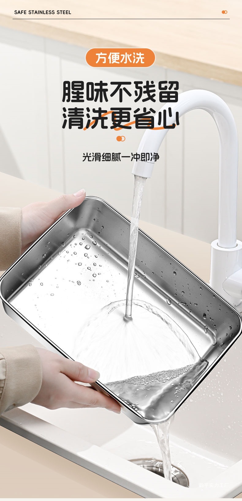 304 스테인레스 스틸 신선한 보관 상자 사각형 접시 냉장고 보관 상자 뚜껑 바베큐 요리 과일 접시 찐 생선 구이 접시스토어 가기