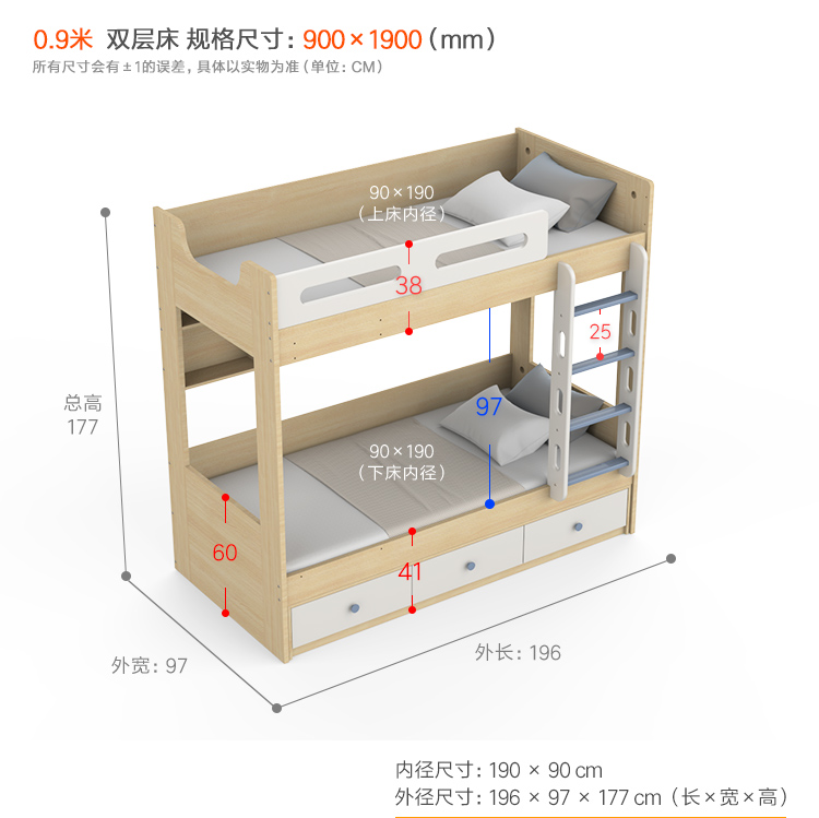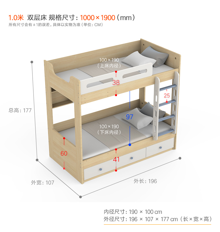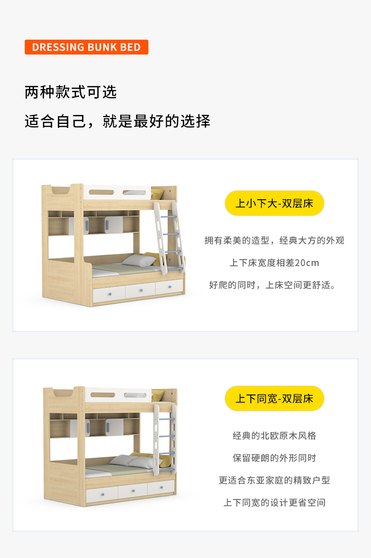 이층침대, 이층침대, 병렬침대, 소형, 공간절약형, 1.0m 어린이용 홍콩 이층침대, 폭이 동일함