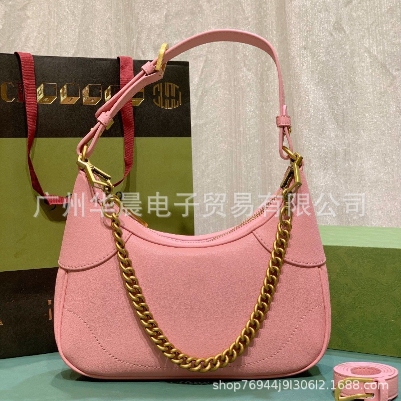 국경 간 새로운 도착 체인 백 언더 암 가방 정품 가죽 여성 초승달 인쇄 편지 어깨 크로스 바디 백 여자 올매치스토어 가기