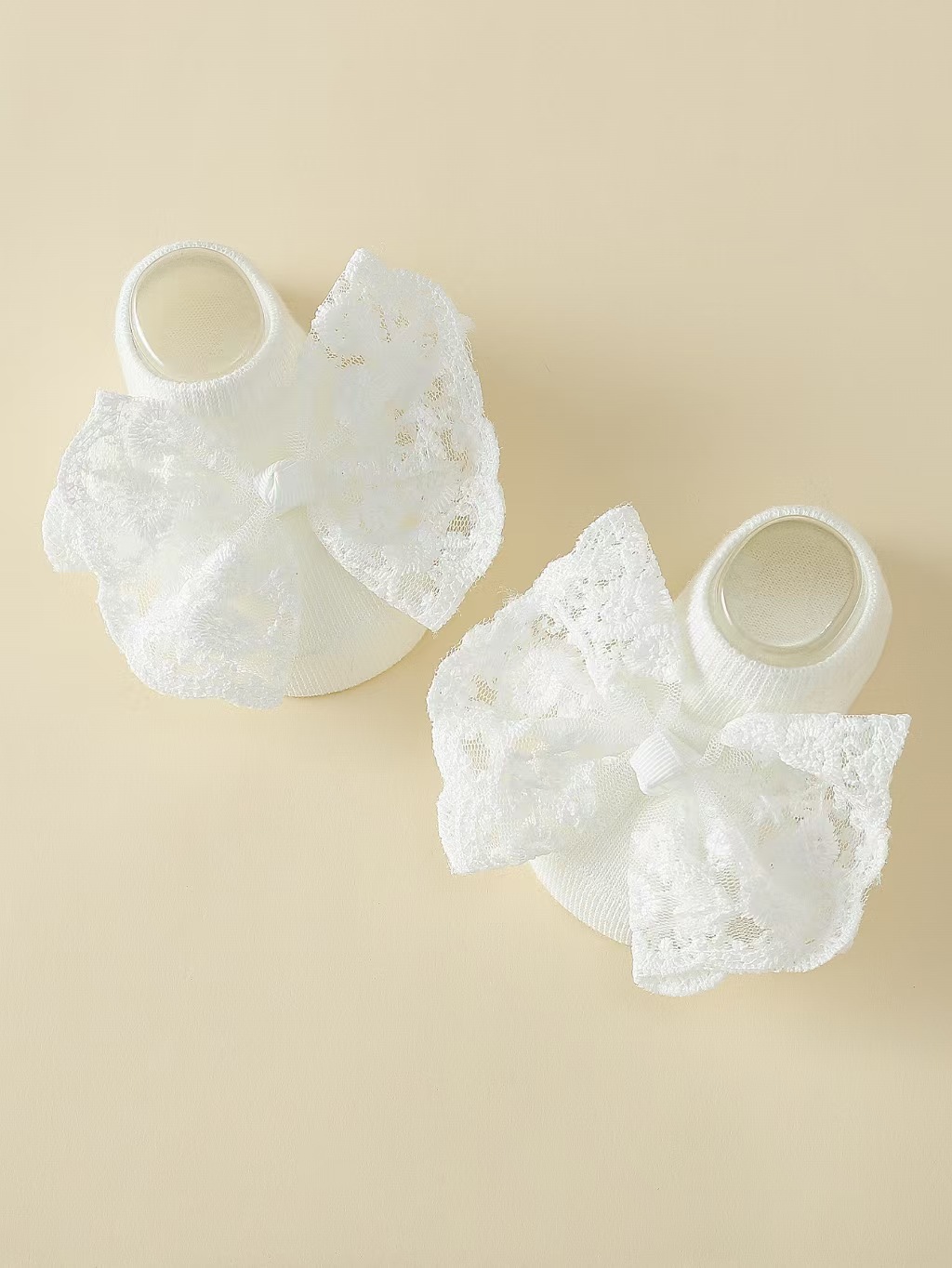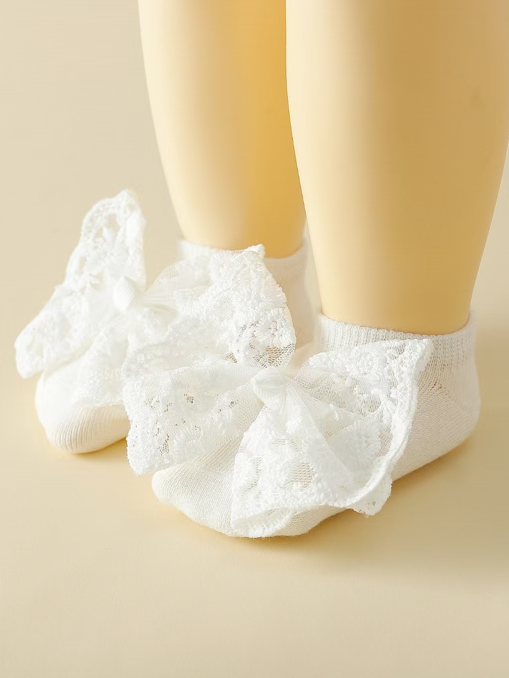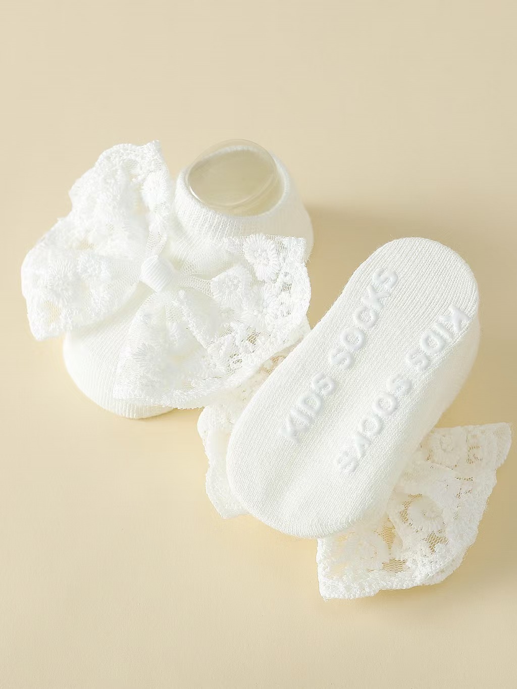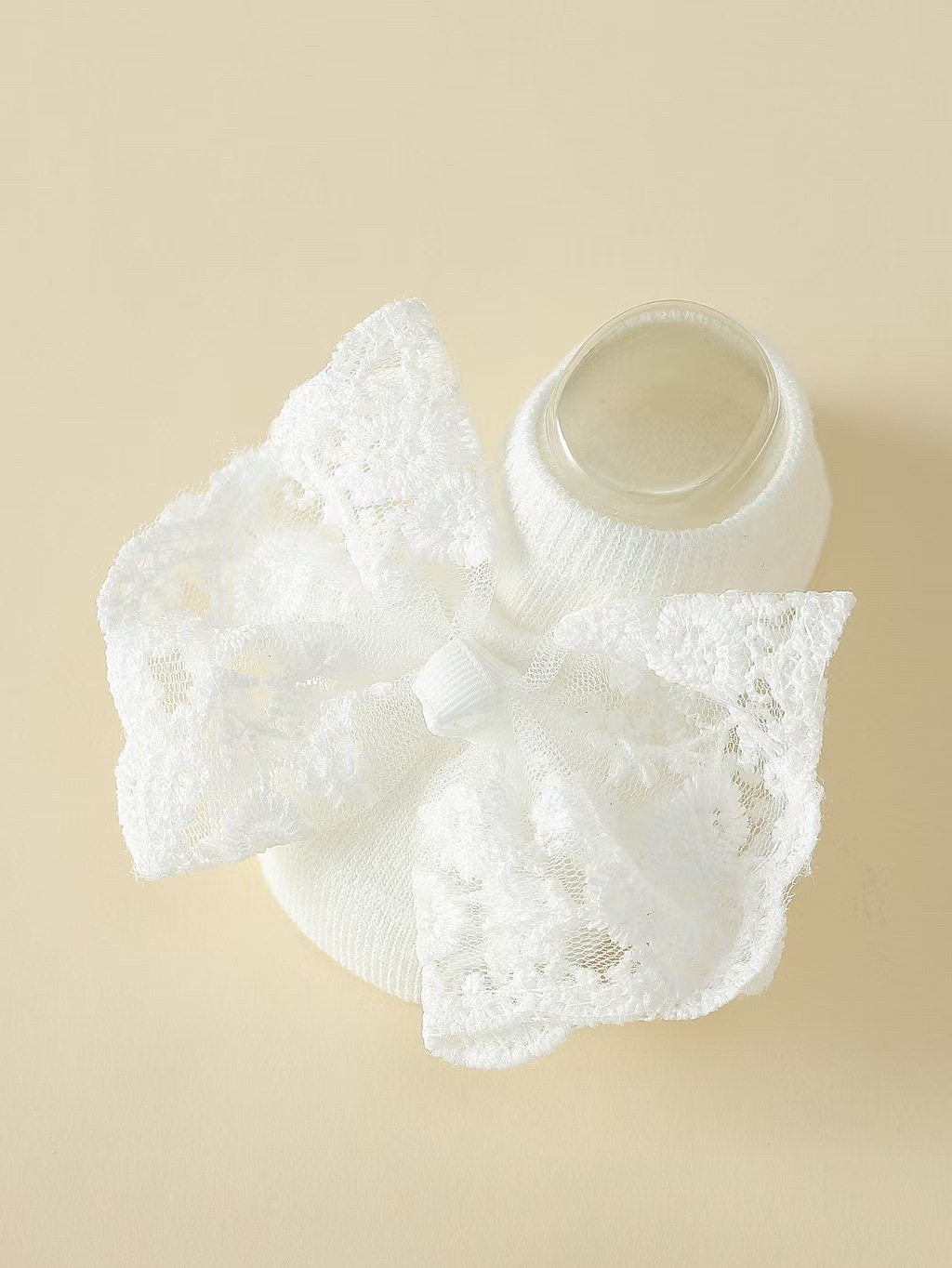 아기 양말 2024 봄 여름 가을 레이스 Bowknot 공주 양말 미끄럼 방지 보트 양말 보름달 양말 어린이 머리 장식 도매