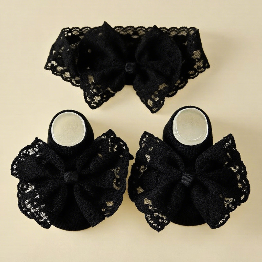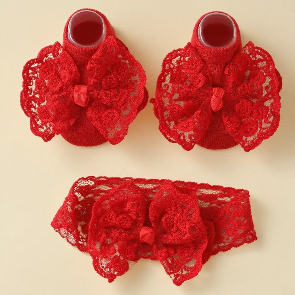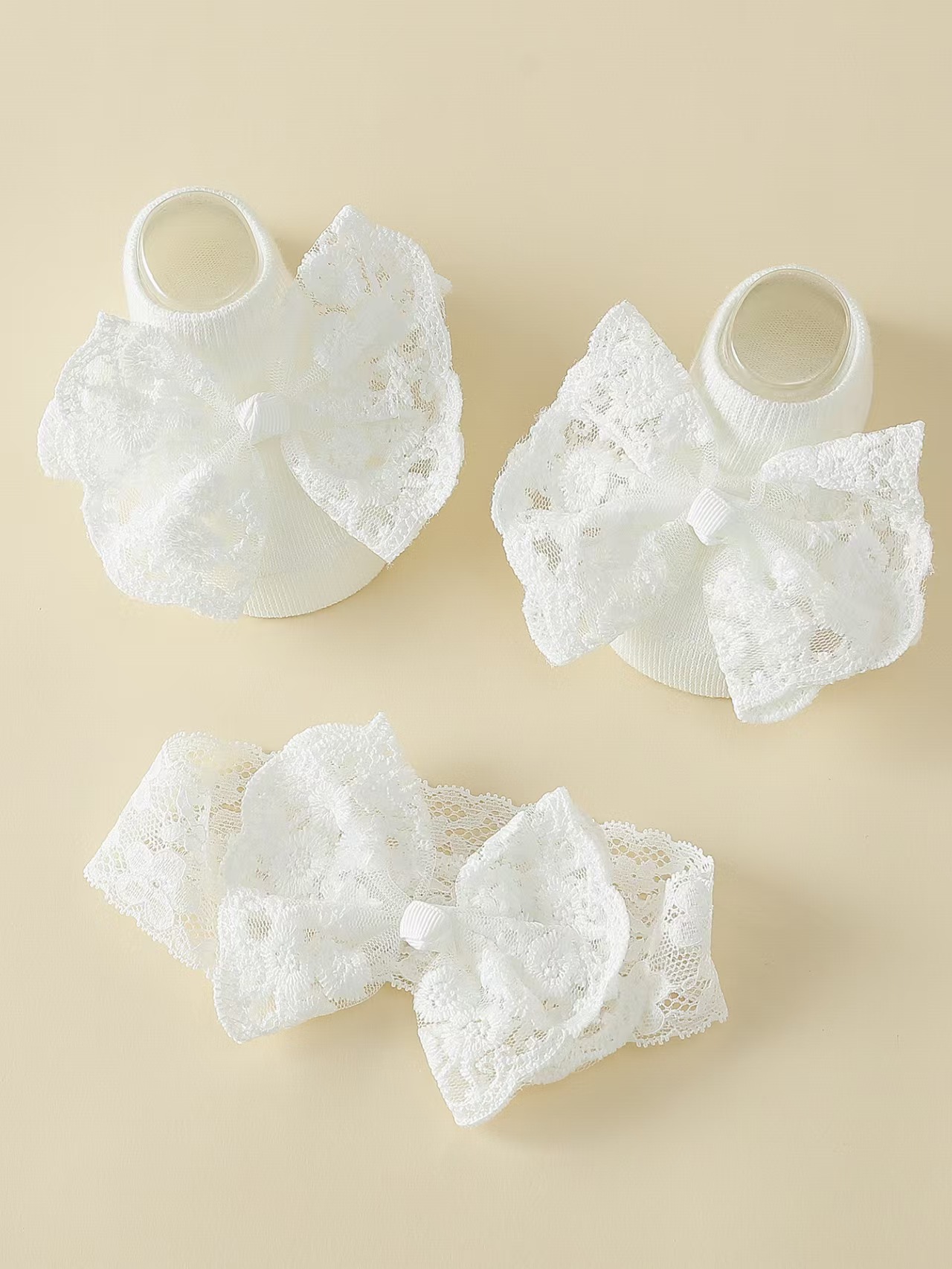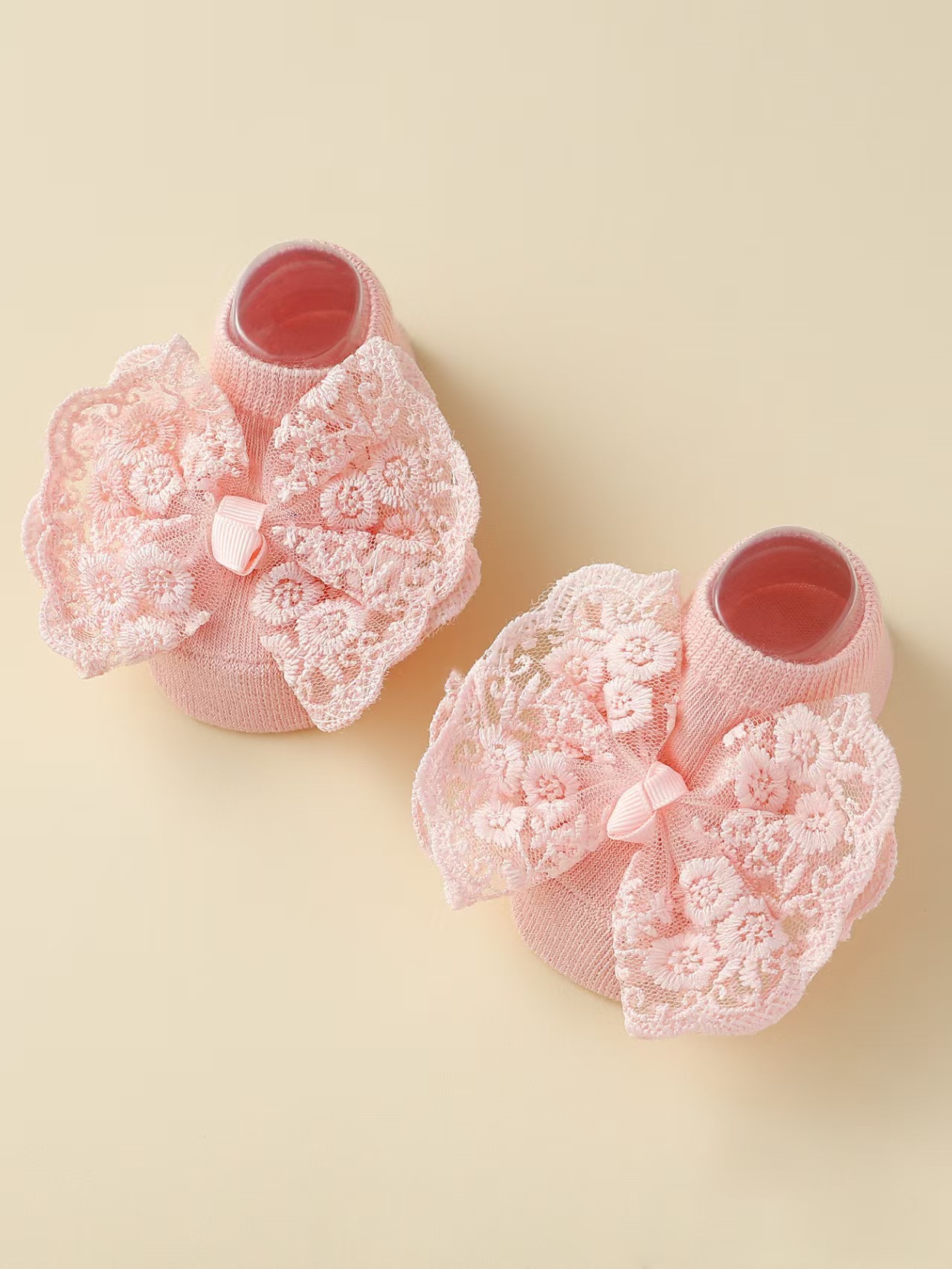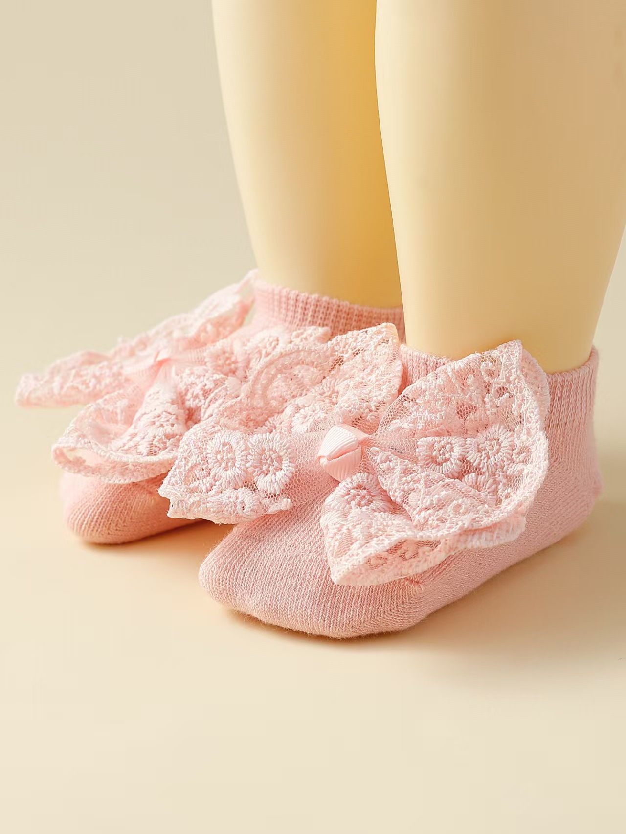 아기 양말 2024 봄 여름 가을 레이스 Bowknot 공주 양말 미끄럼 방지 보트 양말 보름달 양말 어린이 머리 장식 도매