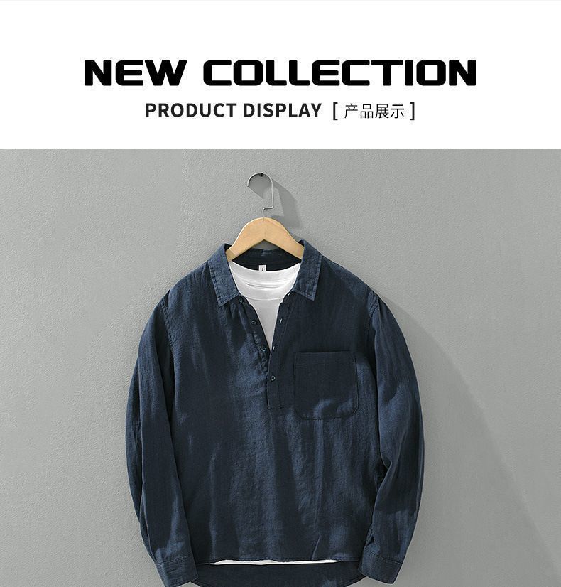 일본 복고풍 긴팔 린넨 셔츠 남성 여름 신작 루즈 풀오버 스퀘어 칼라 셔츠 캐주얼 코튼 및 린넨스토어 가기