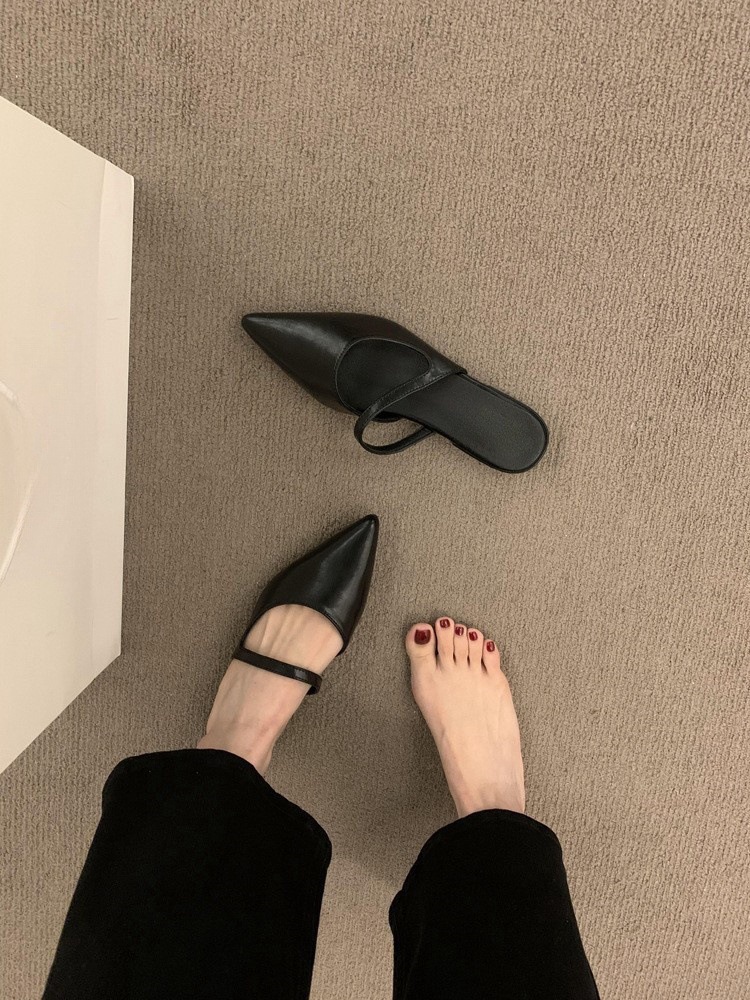 프랑스 스타일 우아한 얕은 포인트 발가락 반 슬리퍼 여성 여름 외부 착용 슬립 온 게으른 뮬러 신발 후면 빈 발가락 샌들