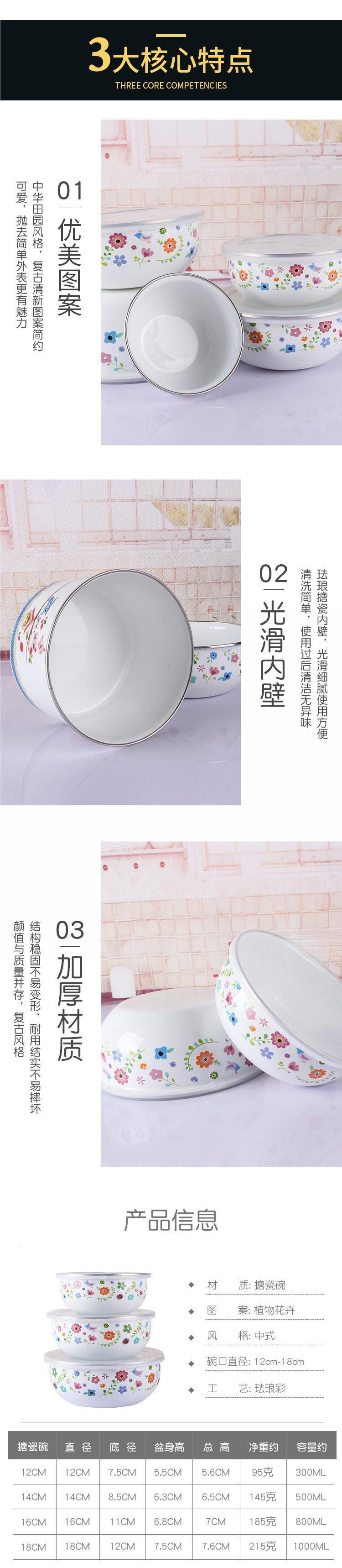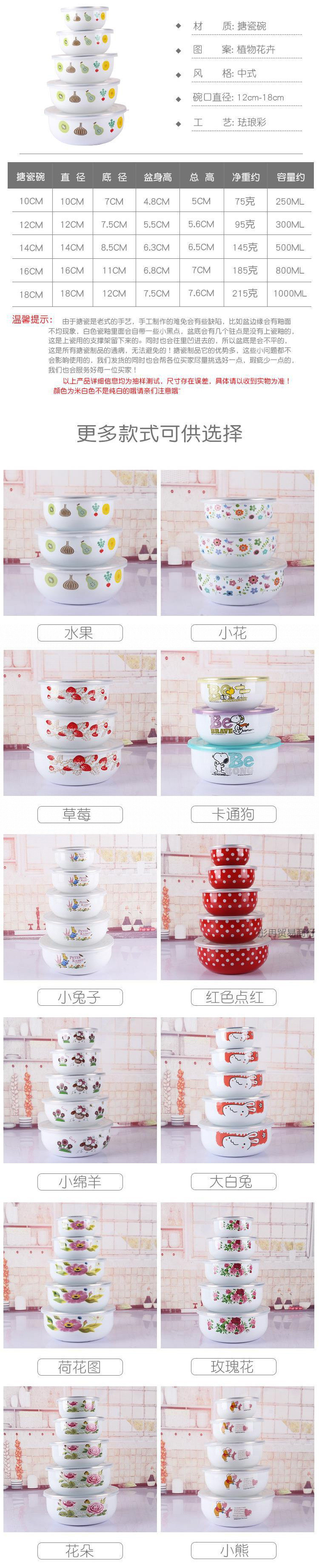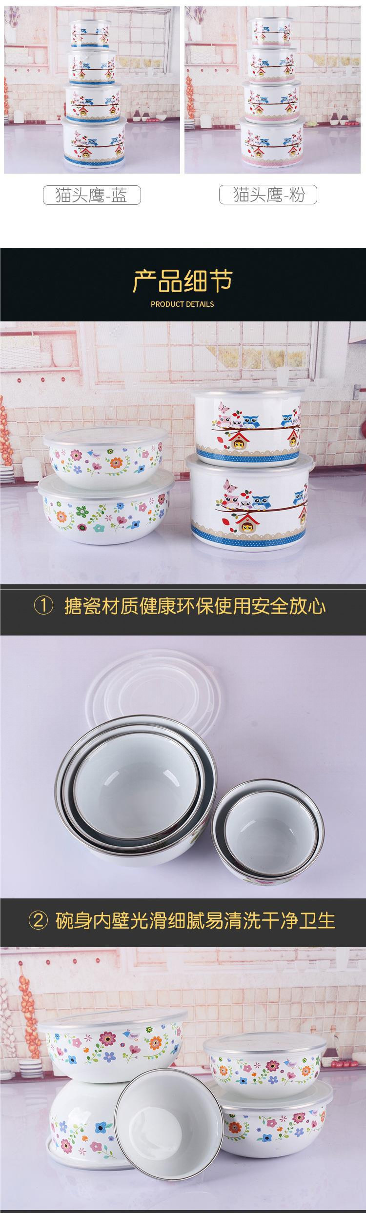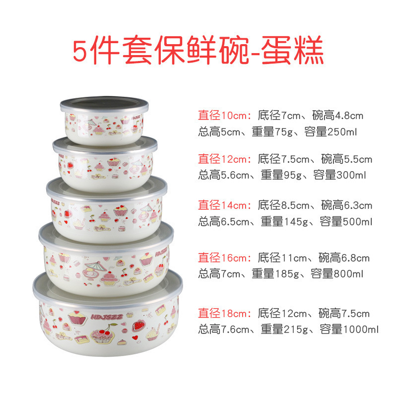 뚜껑이 있는 구식 에나멜 그릇, 두꺼운 밀봉 그릇 세트, 주방 보관 그릇, 향수를 불러일으키는 야채 그릇, 수프 그릇 5종 세트, 밥 그릇스토어 가기