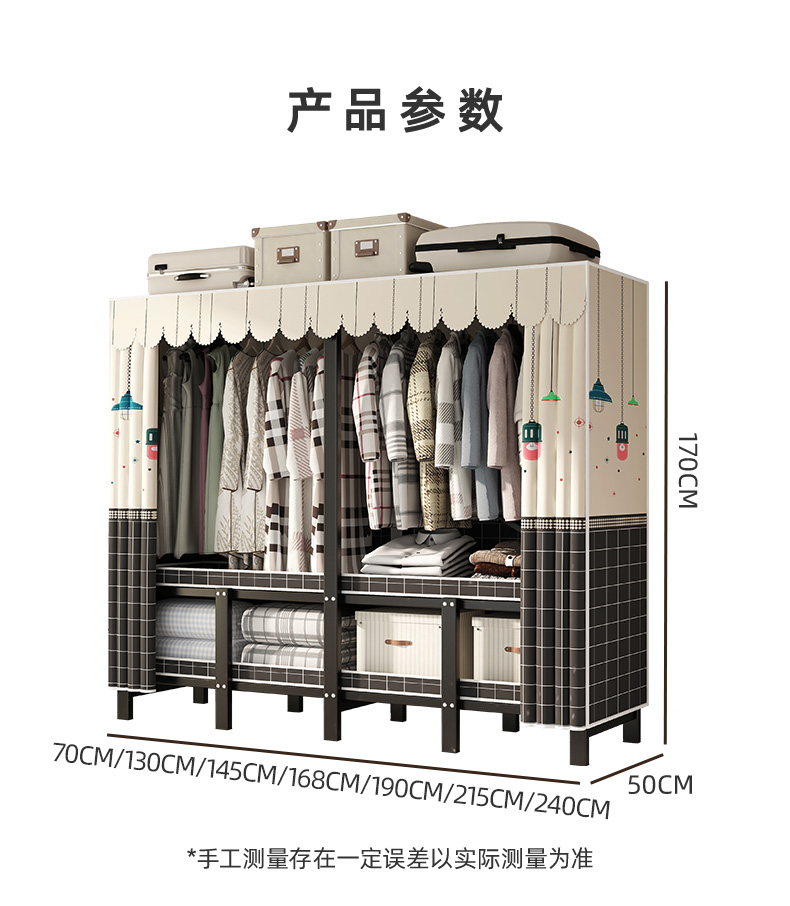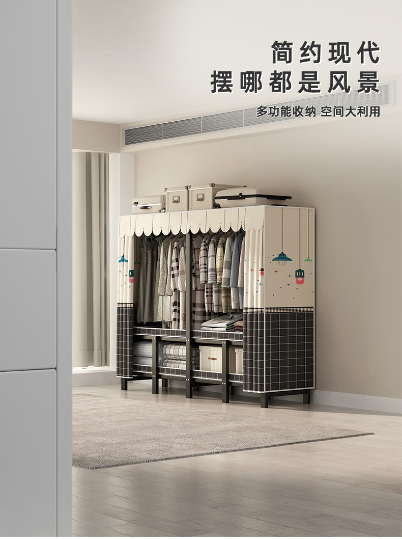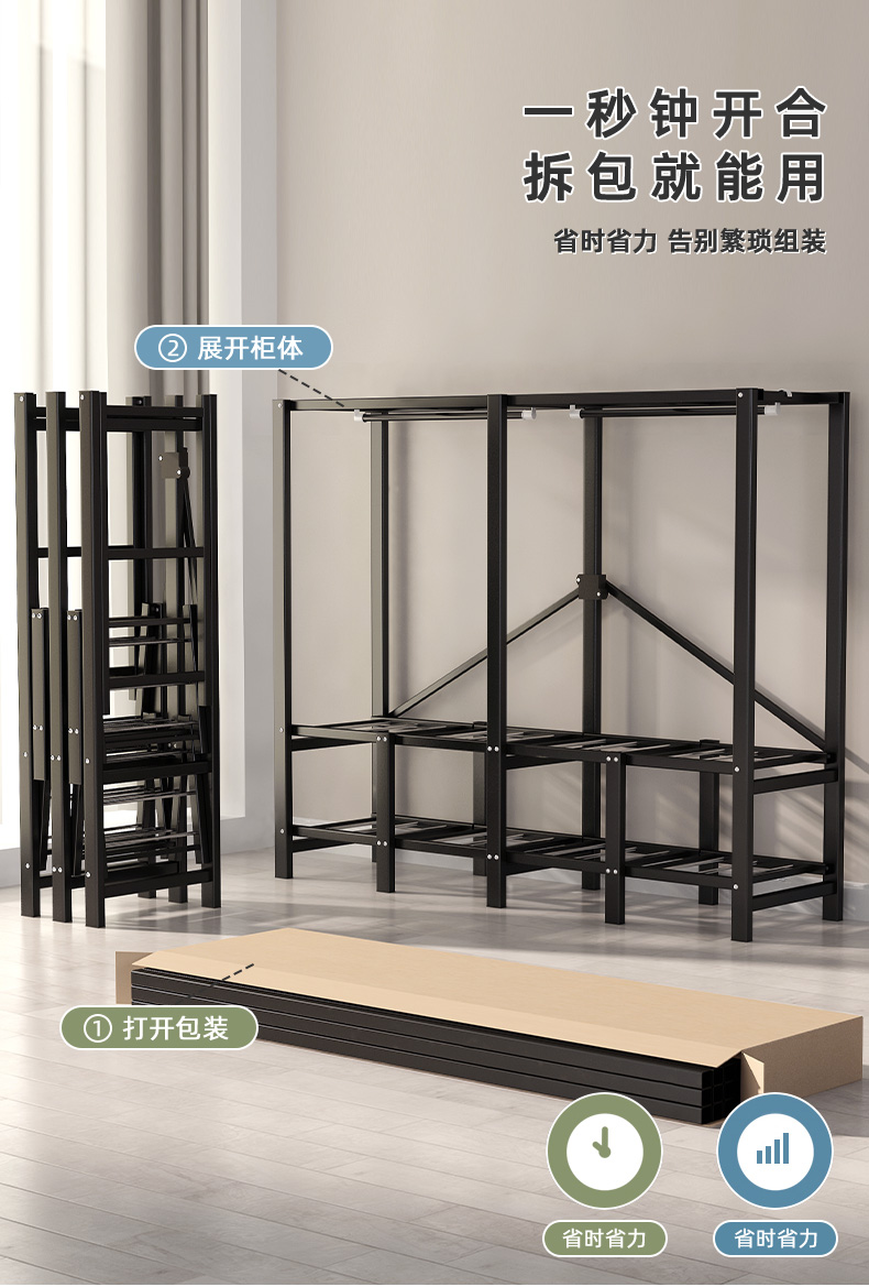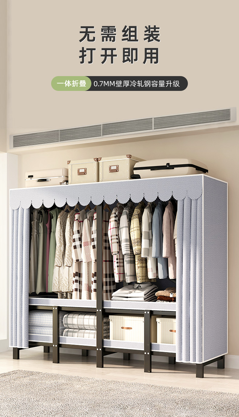 H&설치가 필요없는 옷장 가정용 침실 임대실 간단한 천 옷장 두꺼운 두꺼운 전체 강철 프레임 2025 새로운 옷