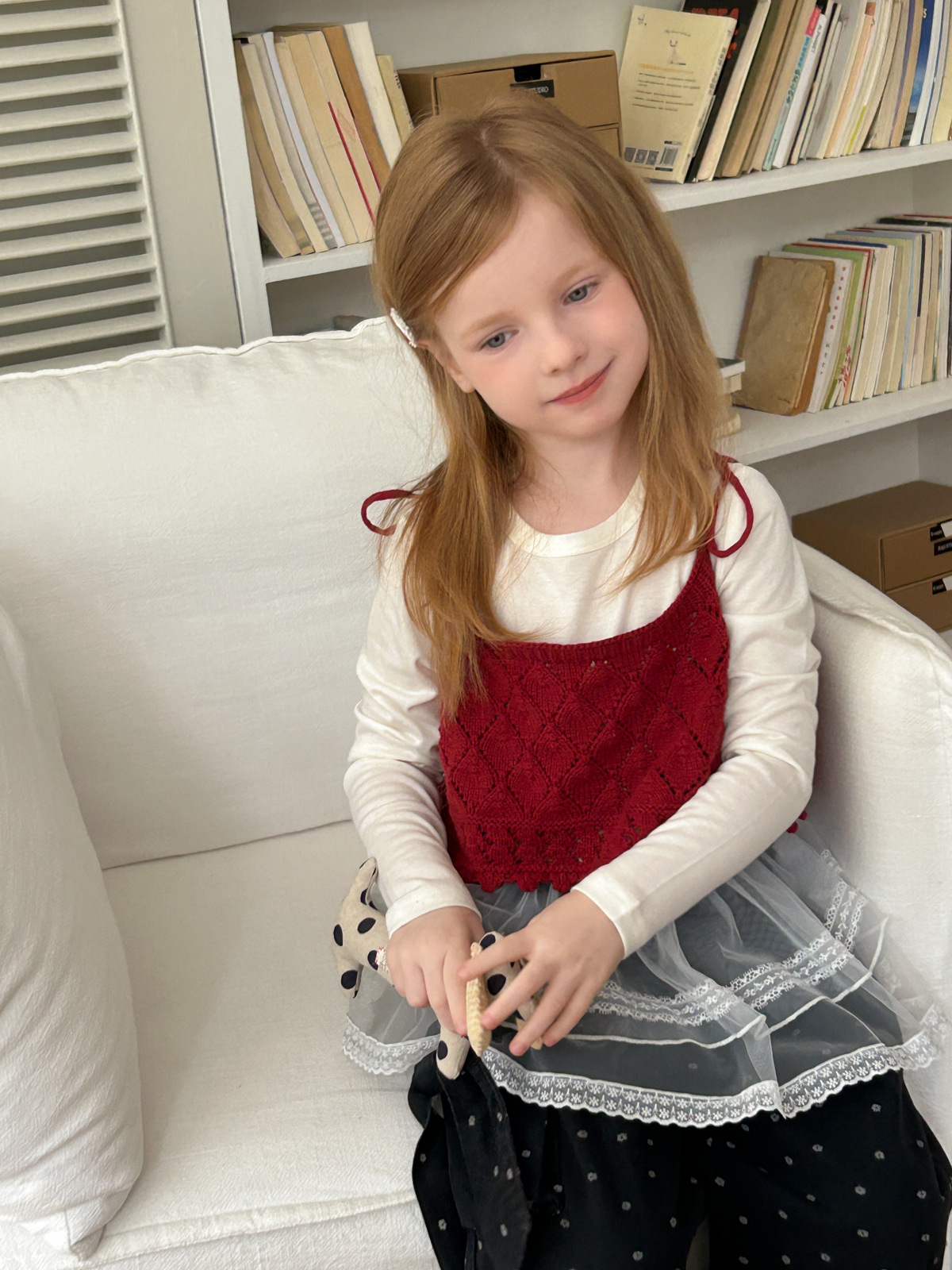 소녀의 봄 2025 새로운 한국 패션 어린이 봄 니트 조끼 소녀 스택 카미솔