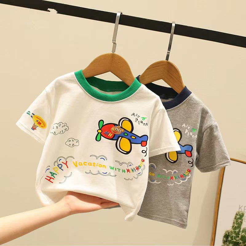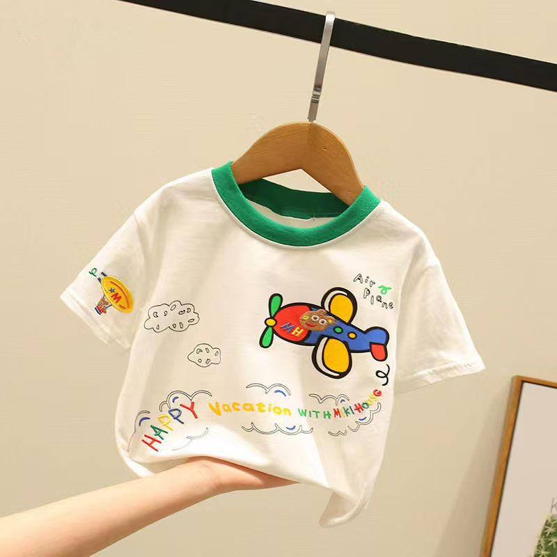 뉴 2025 여름 중소형 소년 아동복 반팔 티셔츠 어린이 아기 만화 인쇄 작은 비행기 잘 반소매 티셔츠
