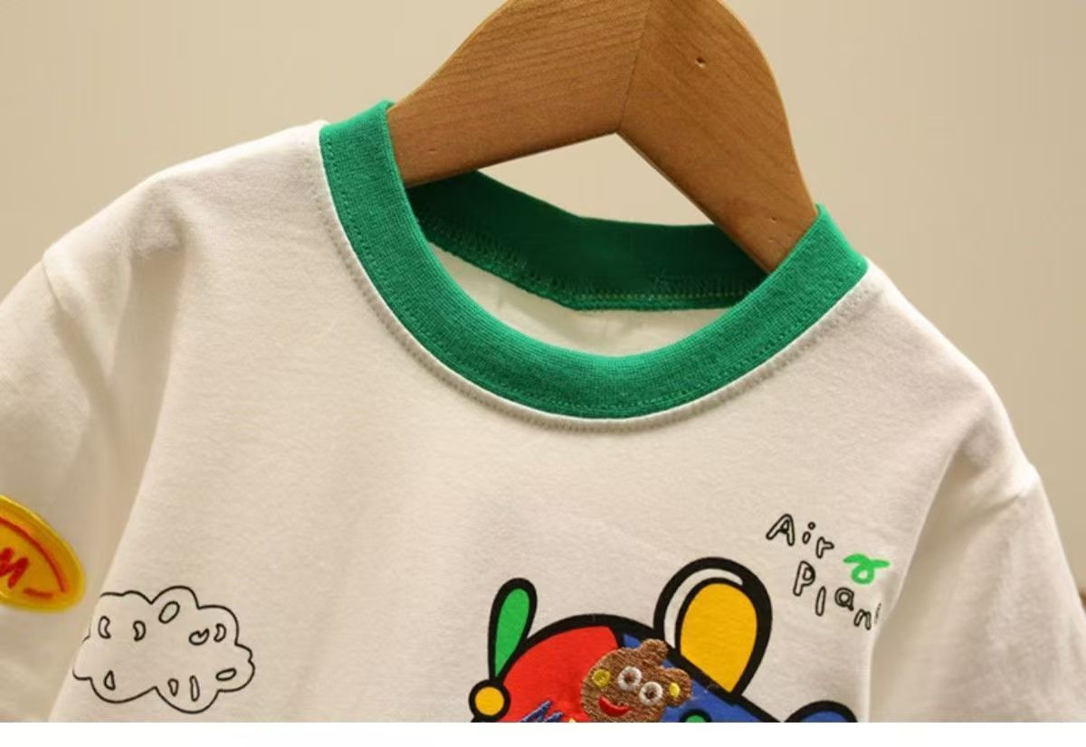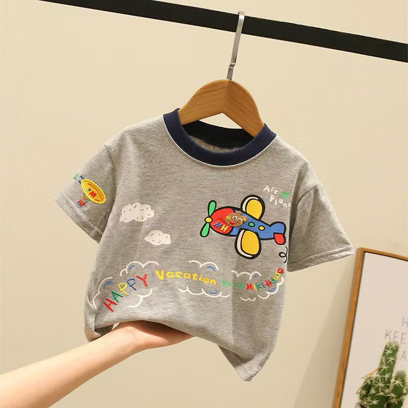 뉴 2025 여름 중소형 소년 아동복 반팔 티셔츠 어린이 아기 만화 인쇄 작은 비행기 잘 반소매 티셔츠스토어 가기
