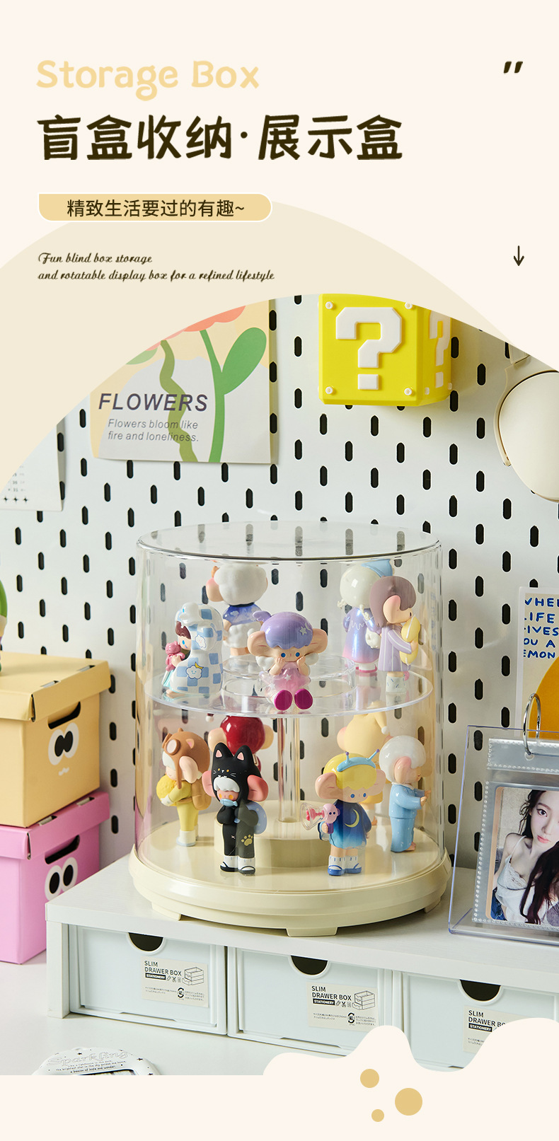 전기 회전 블라인드 박스 스토리지 박스 음악 인형 디스플레이 캐비닛 방진 투명 인형 레고 스토리지 디스플레이 박스