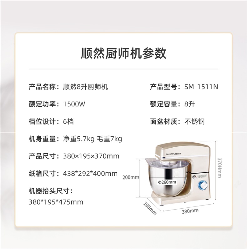 • [더블 배럴 구성 모델] 8리터 용량의 셰프 머신 1500W