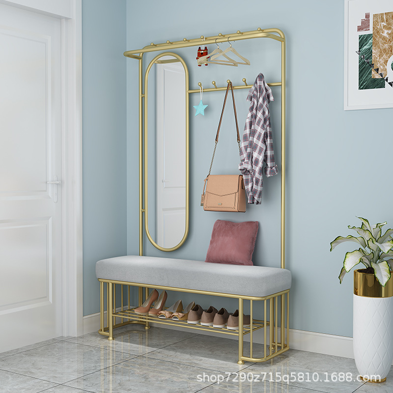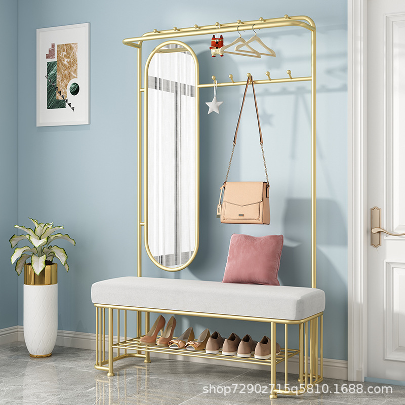 경량 고급 신발 교환 의자, 거울이 있는 코트 랙, 회전식 가정용 신발장, 옷걸이, 일체형 랙, 다기능 소프트백 신발 의자스토어 가기