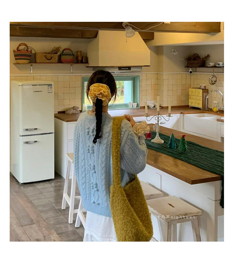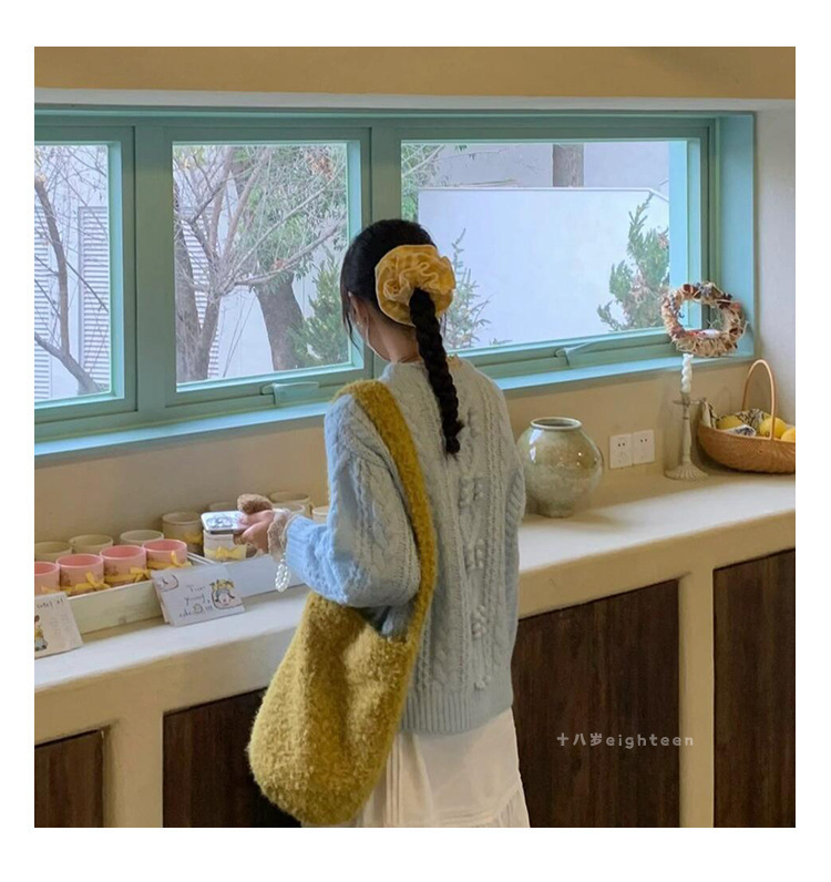 한국식 노란색 격자 무늬 4 층 대형 직감 헤어 링 여성 높은 수준의 느낌 마루베니 머리 땋은 머리 오버 사이즈 간단한 헤어 헤드 라인스토어 가기