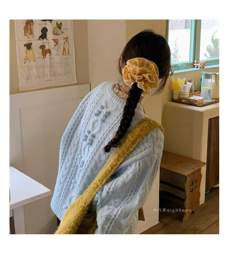 한국식 노란색 격자 무늬 4 층 대형 직감 헤어 링 여성 높은 수준의 느낌 마루베니 머리 땋은 머리 오버 사이즈 간단한 헤어 헤드 라인