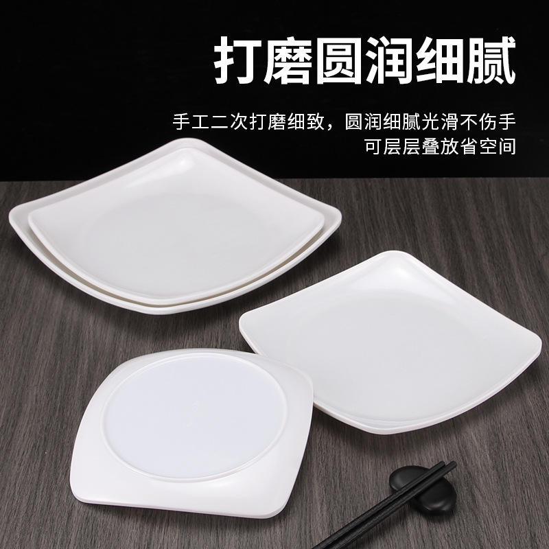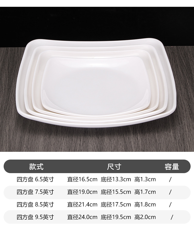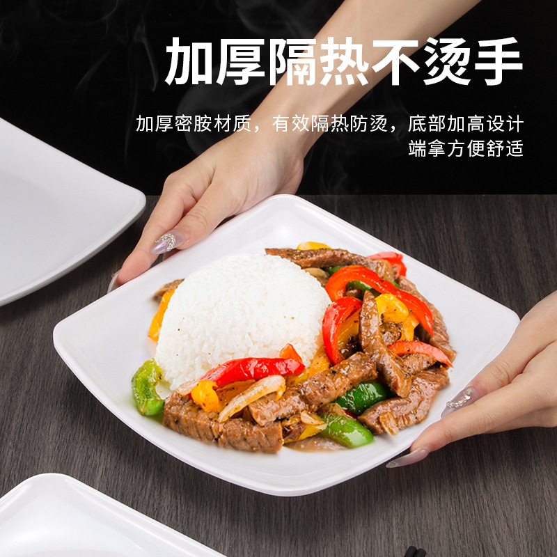 멜라민 상업 패스트 푸드 레스토랑 튀긴 가루 덮은 쌀 사각형 접시 도자기 플라스틱 스낵 플레이트 스퀘어 샐러드 요리스토어 가기