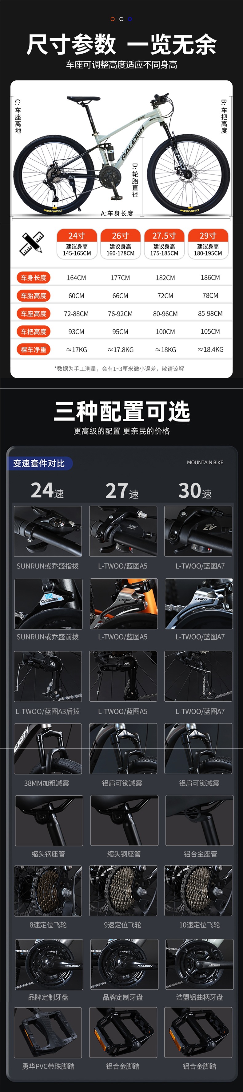 랜링 소프트 테일 마운틴 바이크 남성 성인 여성 자전거 십대 학생 가변 속도 더블 충격 흡수 내구성