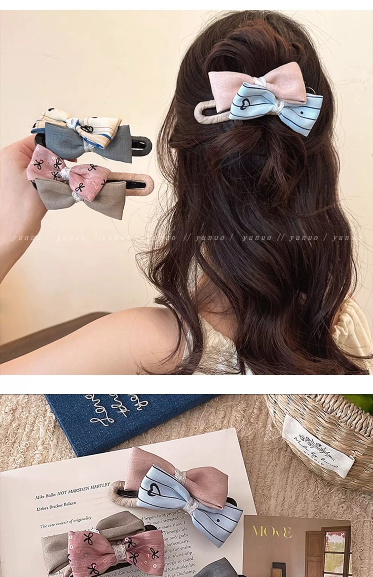 • 그레이 + 핑크 더블 보우 덕빌 클립