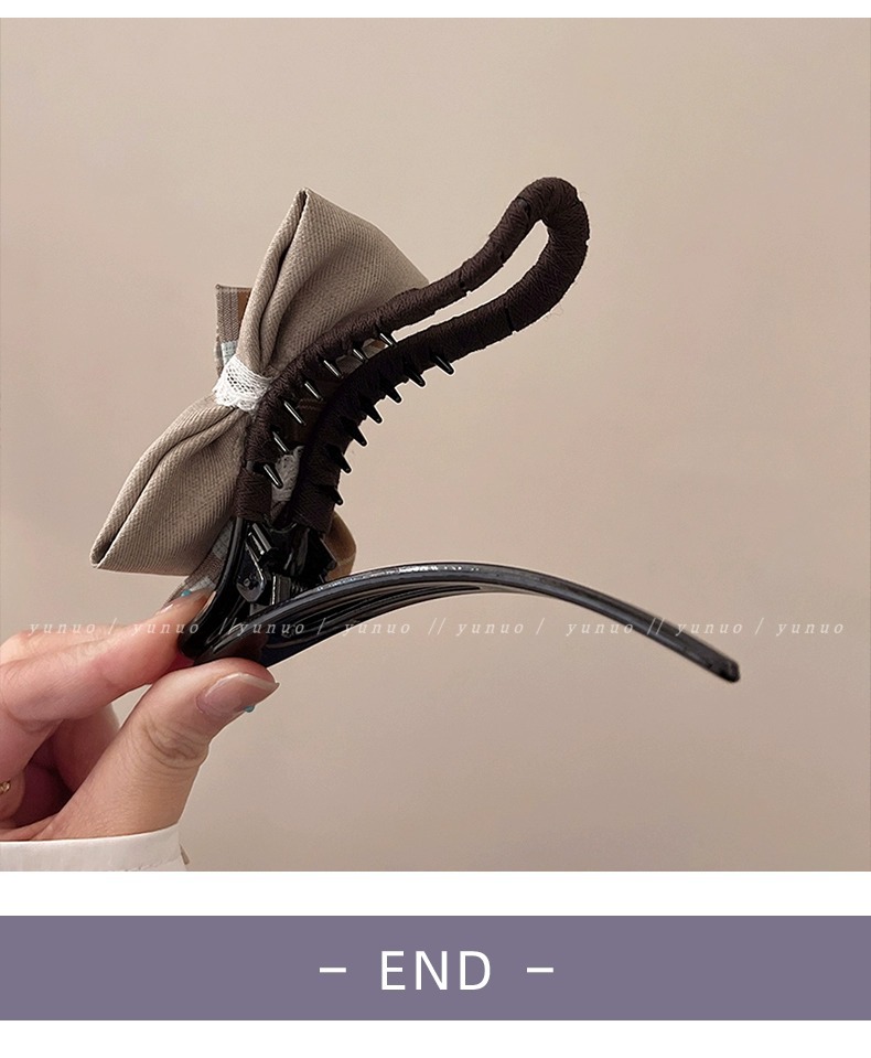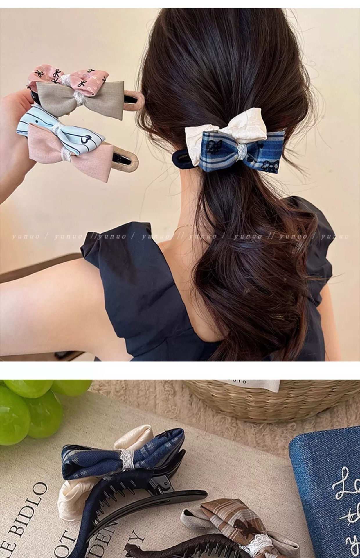 • 라이스 + 블루 체크 더블 보우 덕빌 클립