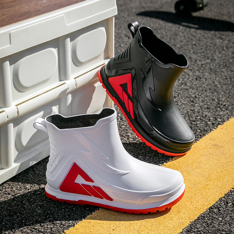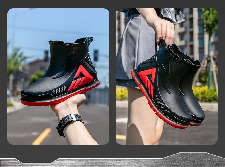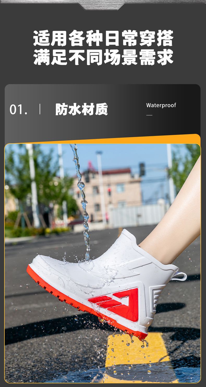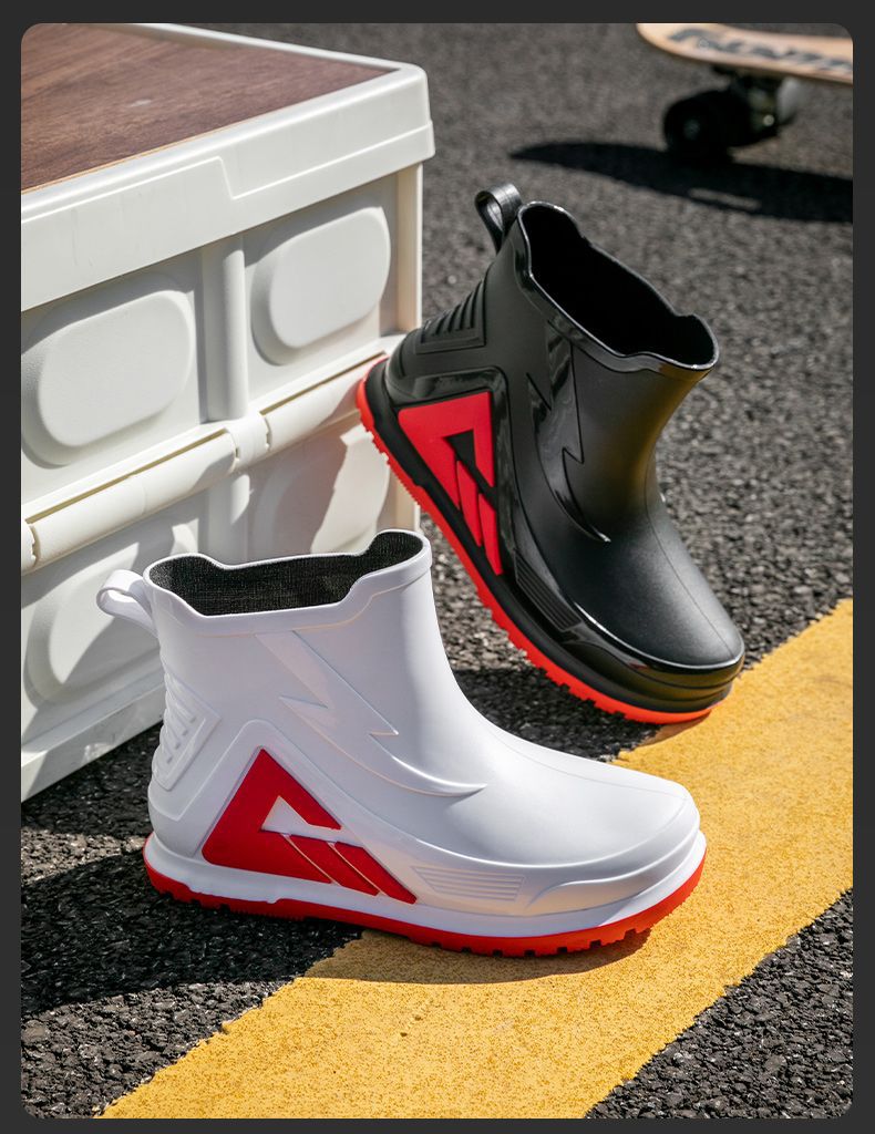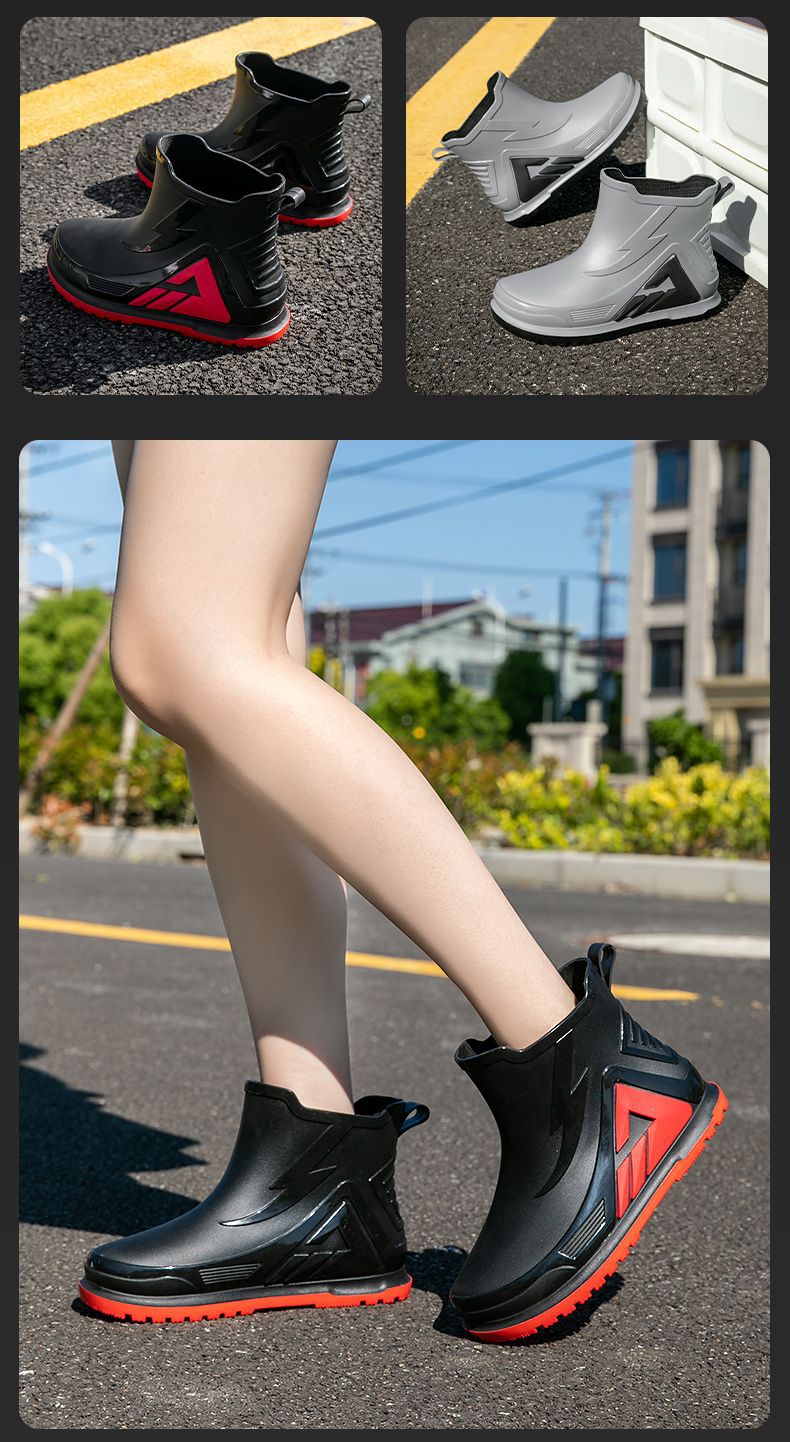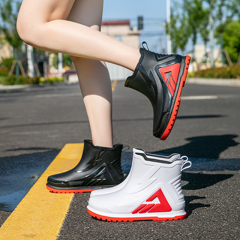 남성용 장화 2024 새로운 방수 신발 미끄럼 방지 장화 여름 고무 신발 남성과 여성을위한 가볍고 내마모성 비오는 날