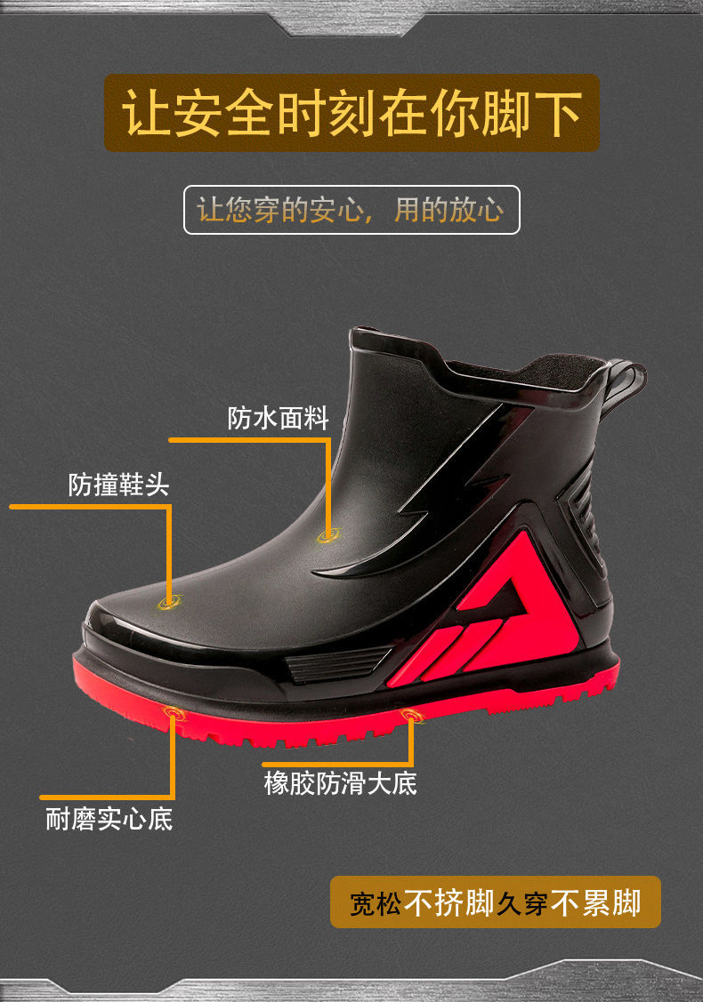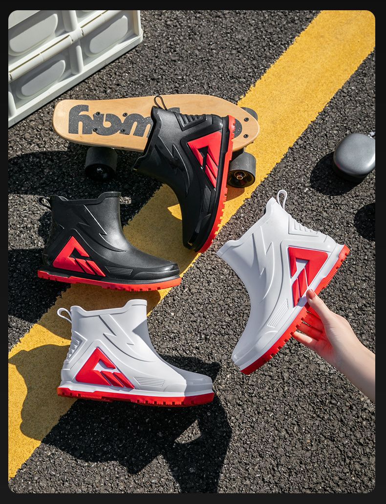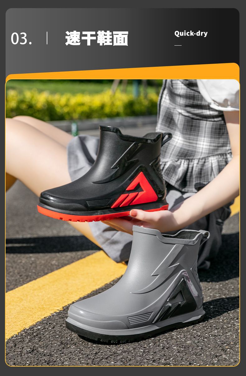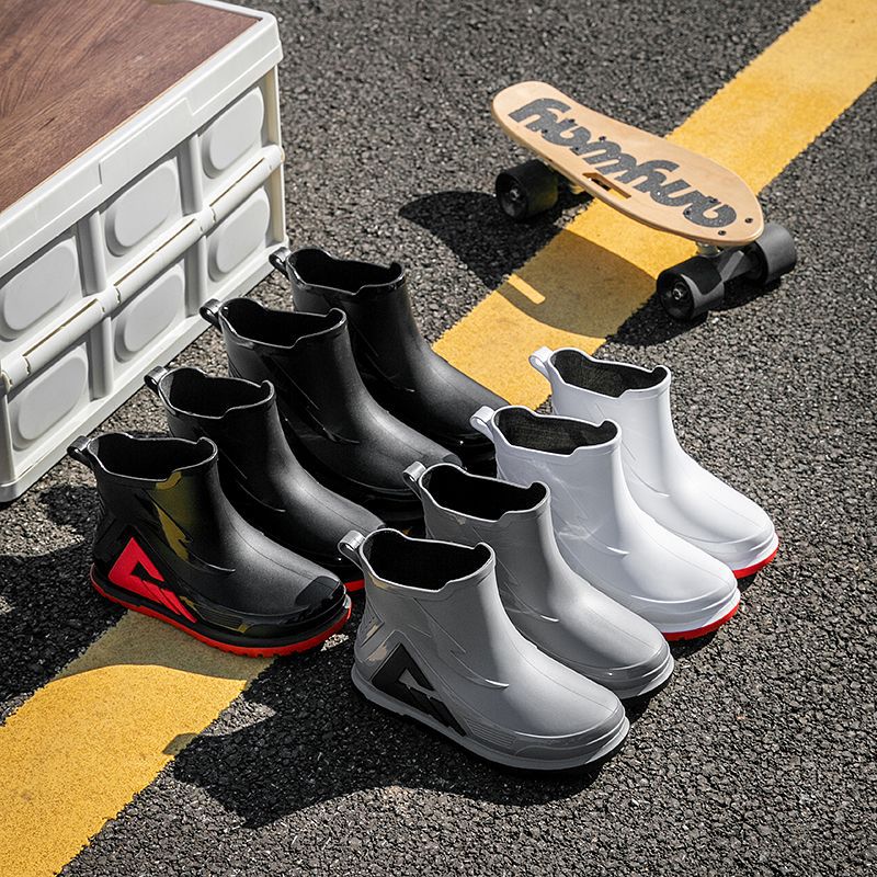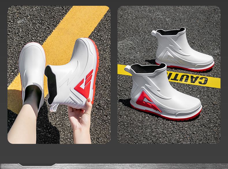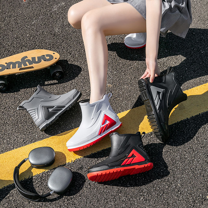 남성용 장화 2024 새로운 방수 신발 미끄럼 방지 장화 여름 고무 신발 남성과 여성을위한 가볍고 내마모성 비오는 날