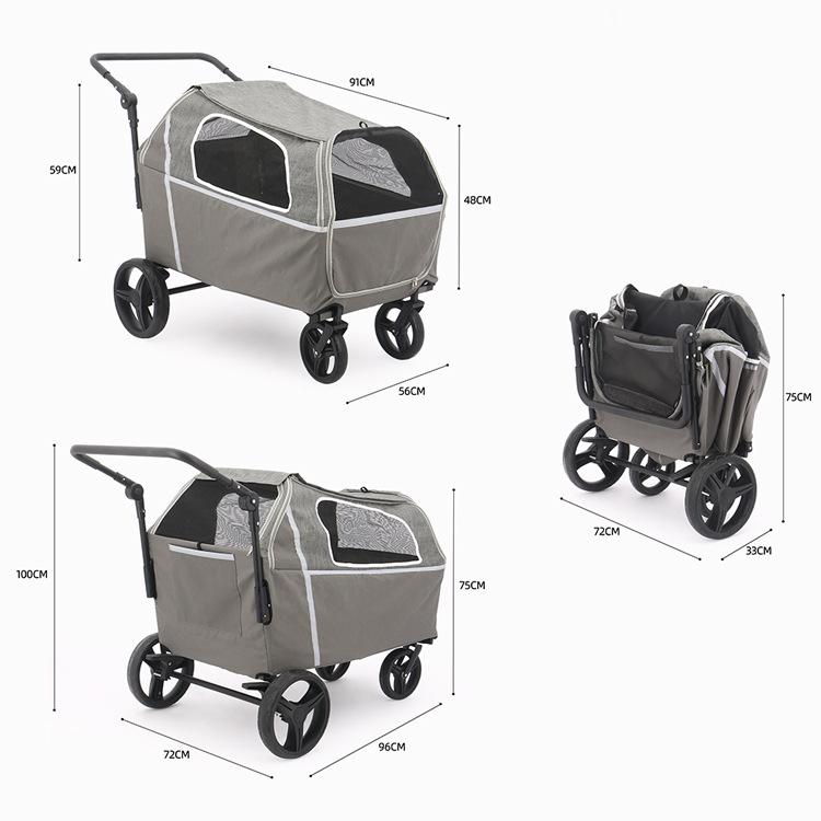 국경 간 경량 접이식 애완 동물 카트 이동식 중형 및 대형 개 야외 개 걷기 통기성 트레일러 사용자 정의스토어 가기