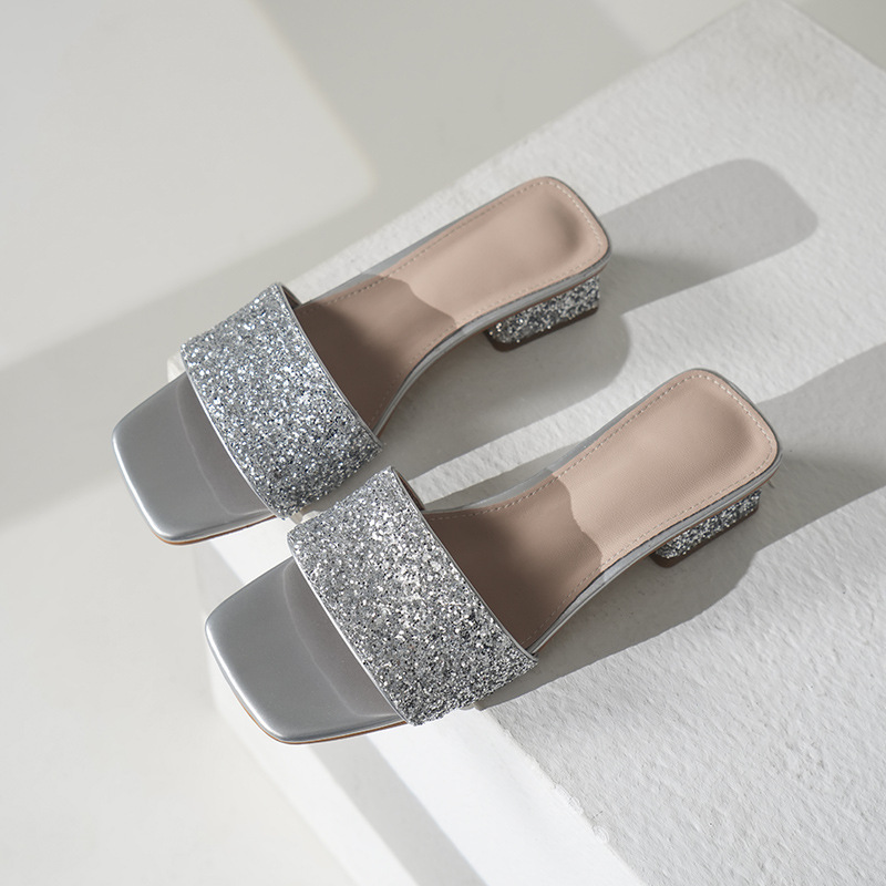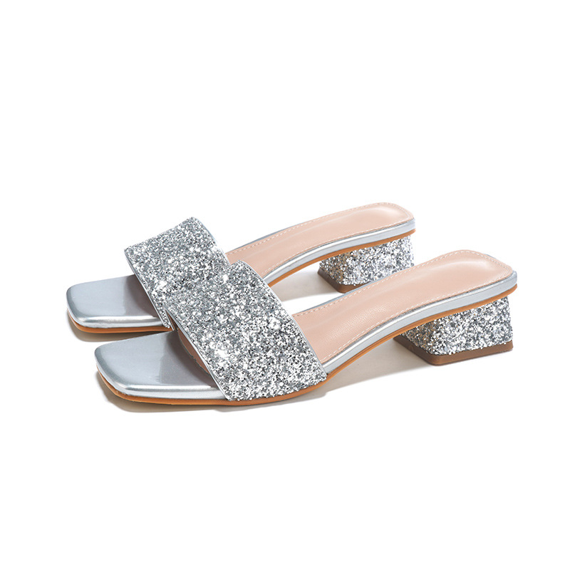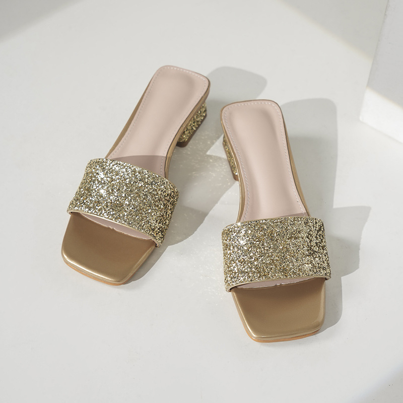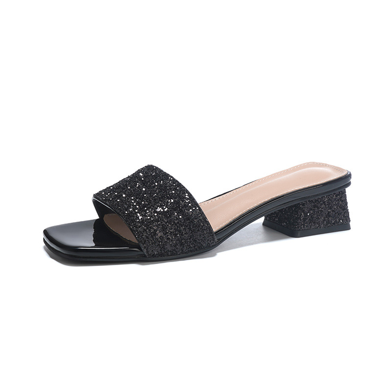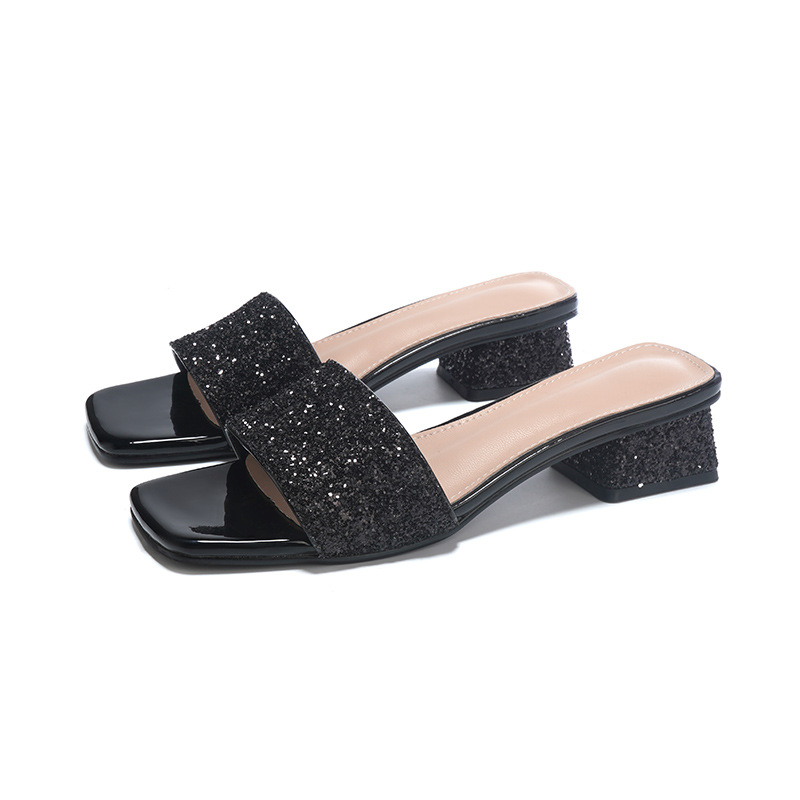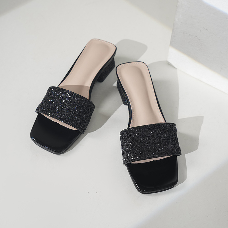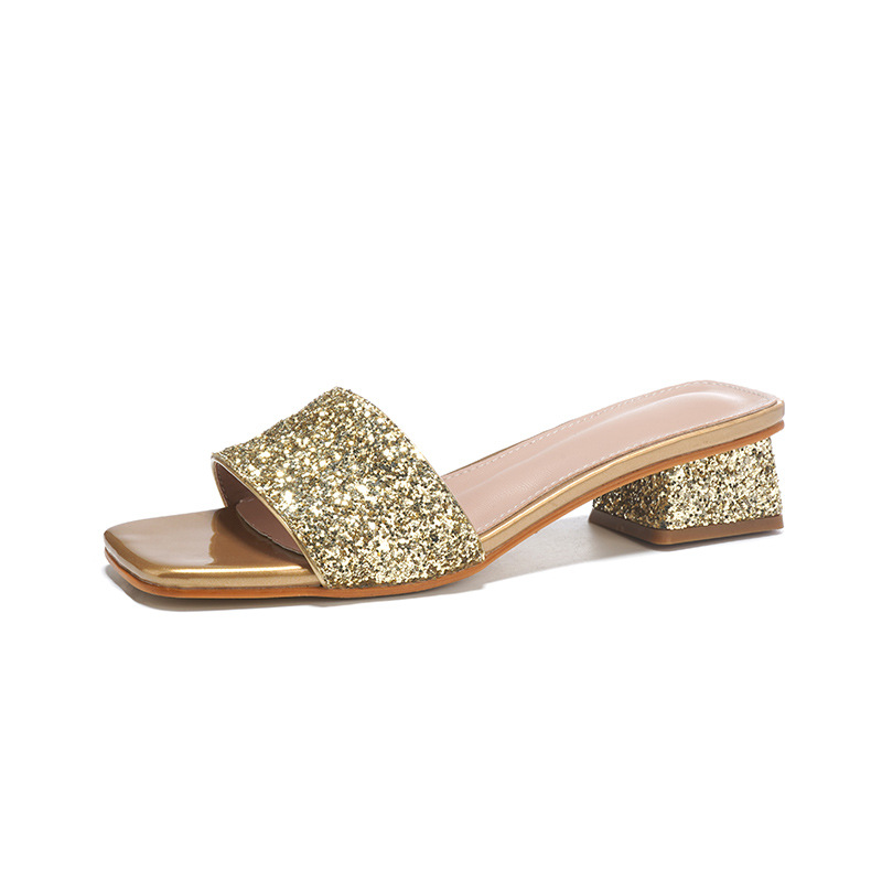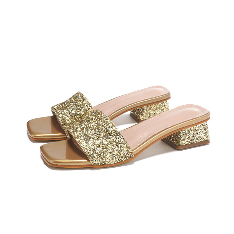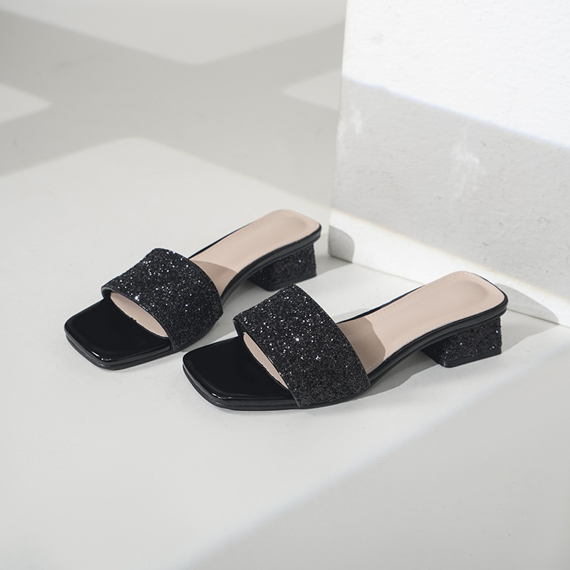 여름 신상 두꺼운 굽 샌들, 여름 아우터, 패셔너블한 스퀘어 굽, 로우 굽, 외출용 여성 슬리퍼, 라지 사이즈 슬리퍼스토어 가기