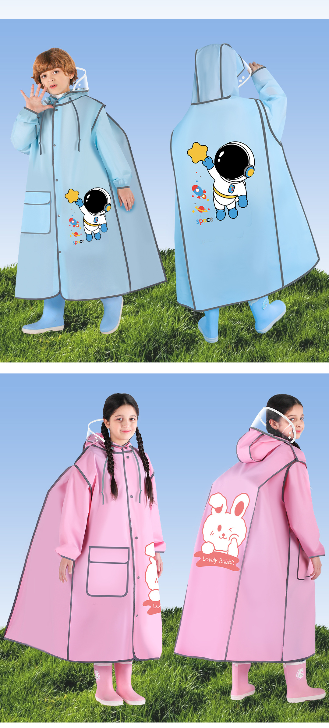 초등학생 및 중학생을 위한 아동용 비옷, 남학생과 여학생을 위한 특별한 긴 길이, 큰 어린이를 위한 큰 학교 가방, 전신 비옷