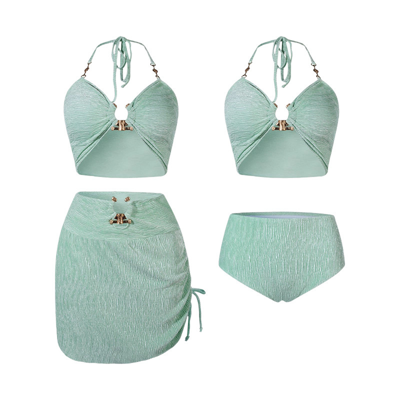 비키니 수영복 여성 2025 새로운 하이 엔드 섹시한 홀터넥 스플릿 3 피스 스커트 스타일 온천 해변 수영복