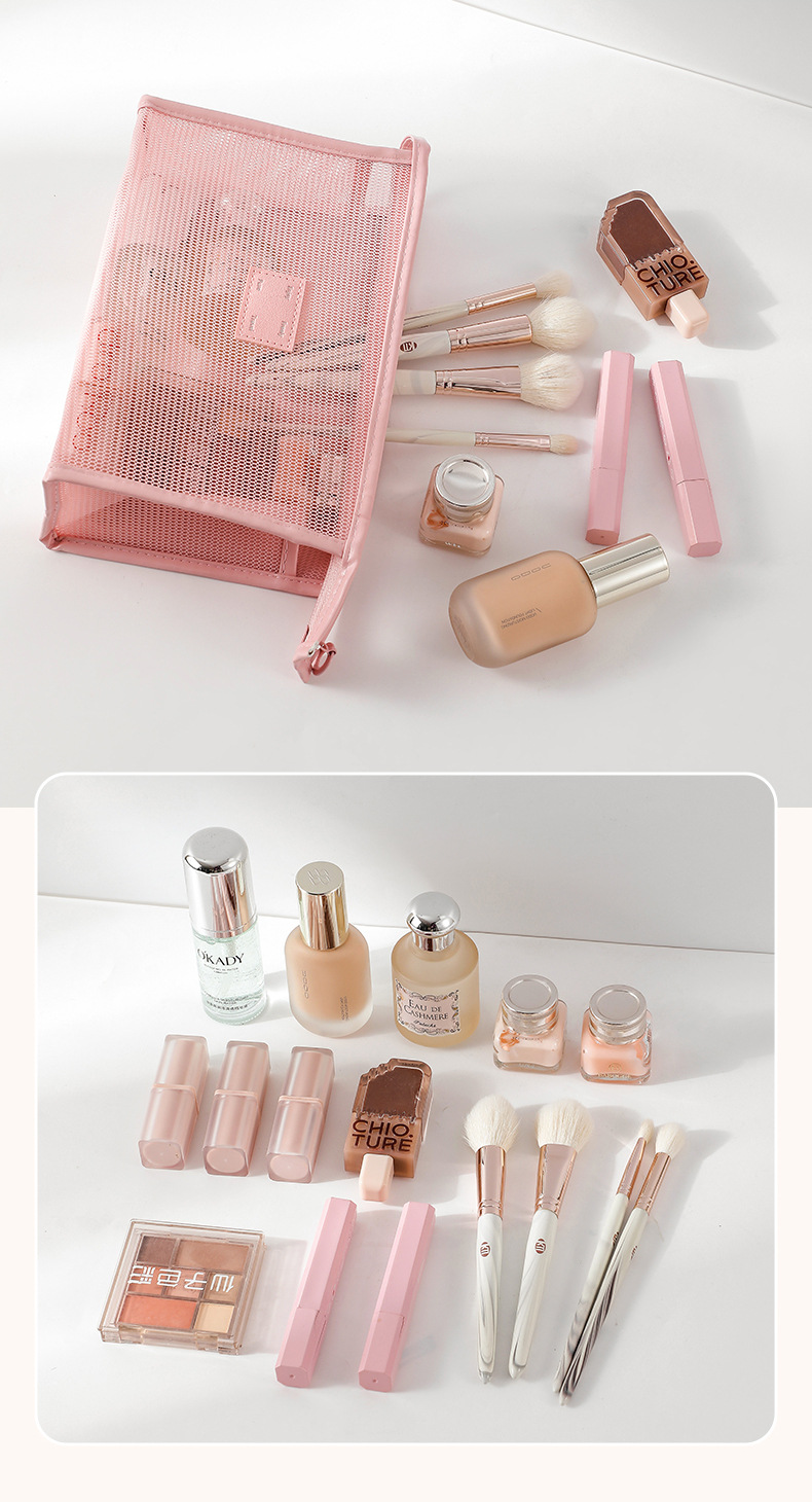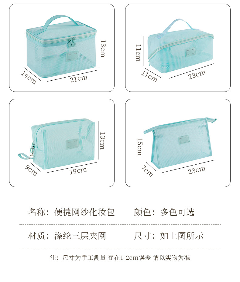 국경 간 메쉬 화장품 가방 화장품 보관 가방 대용량 휴대용 투명 여행 메쉬 세척 가방 세트 로고스토어 가기