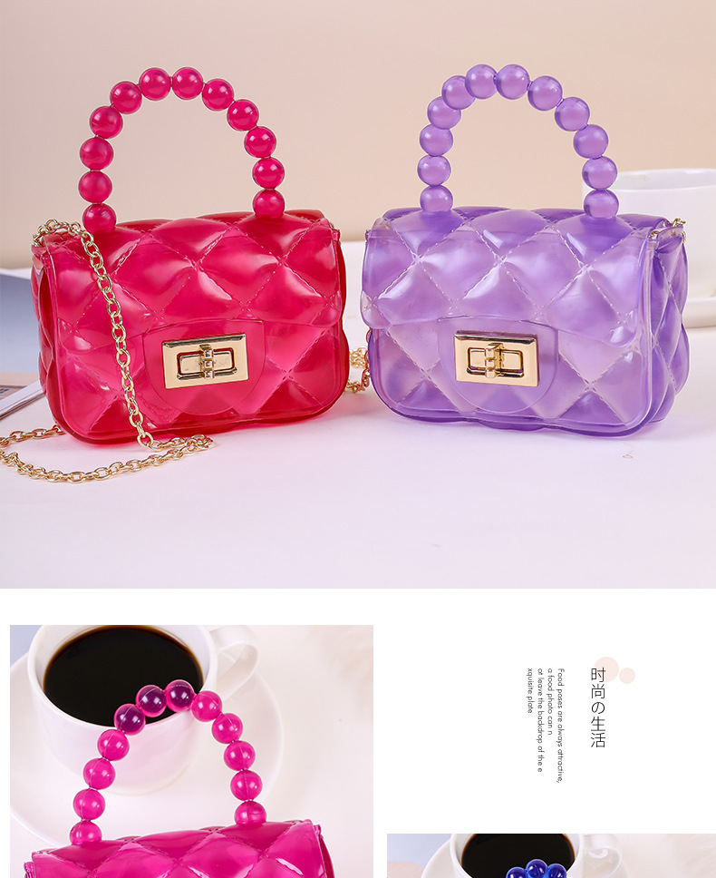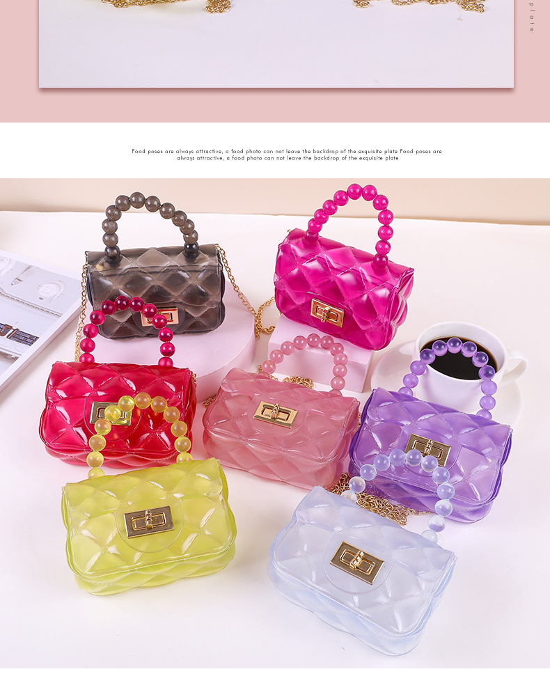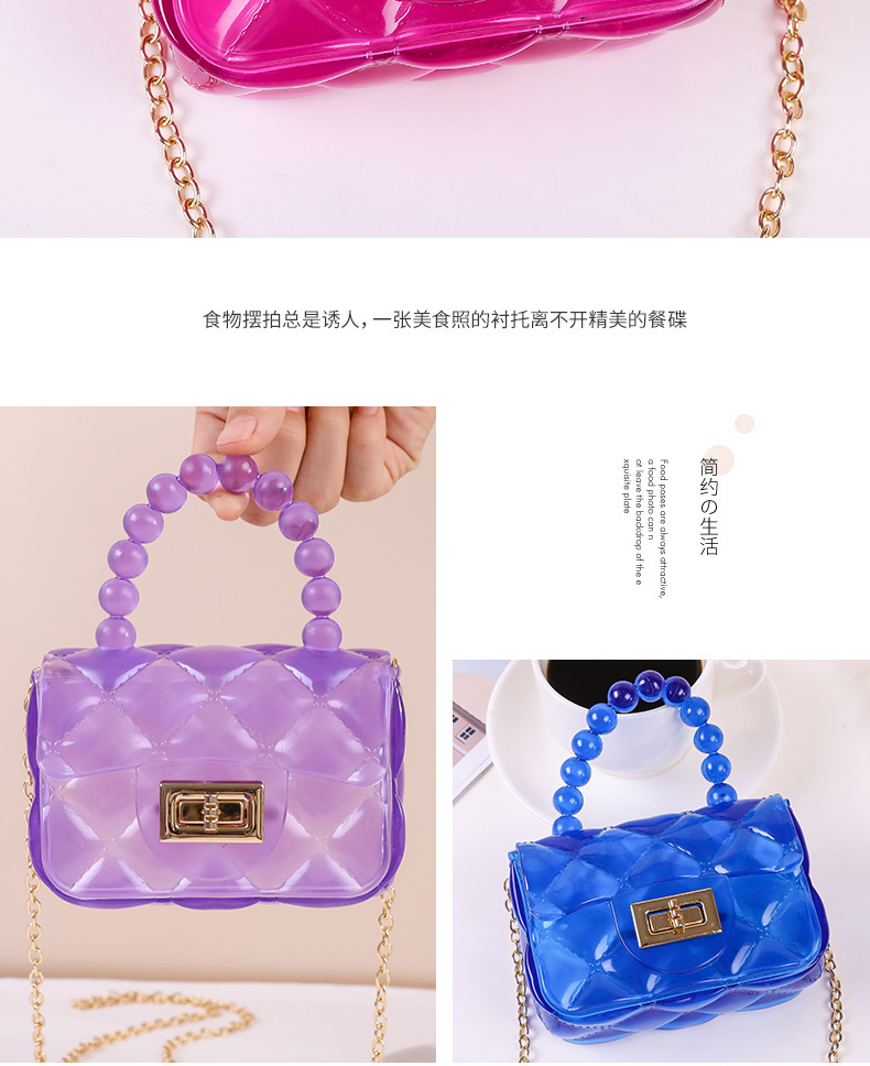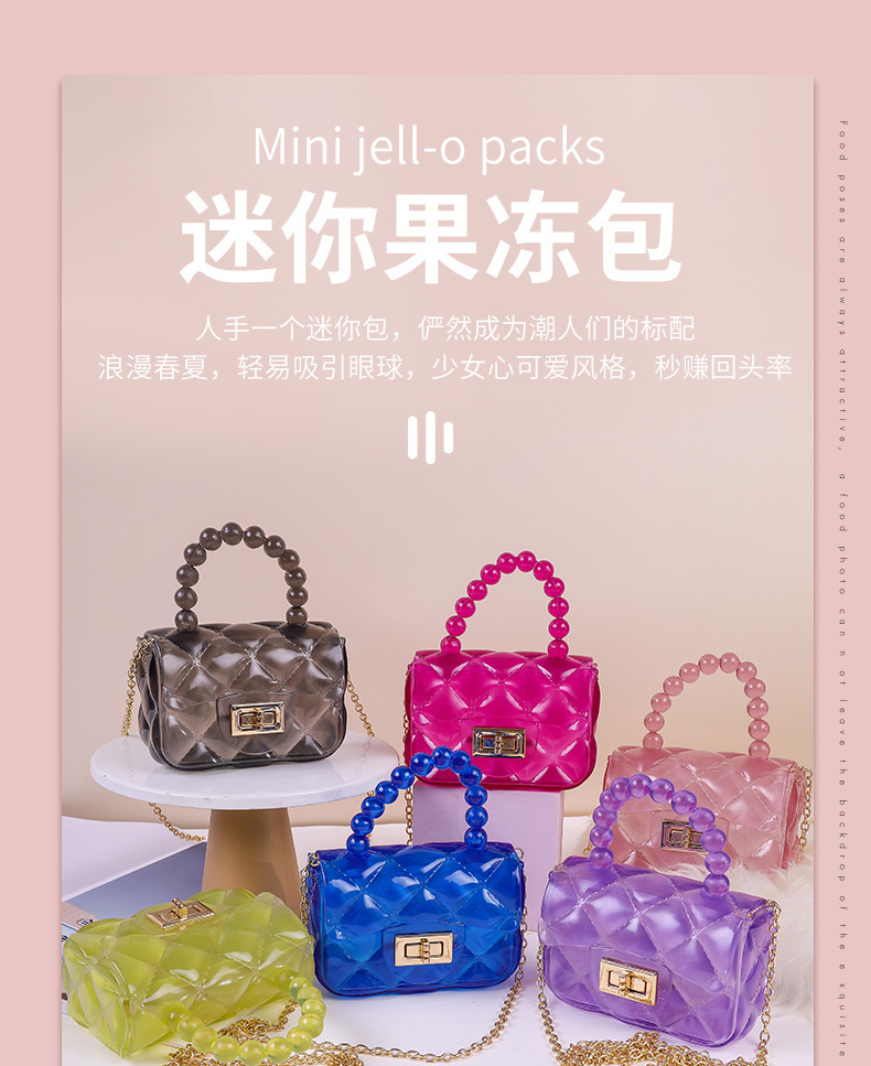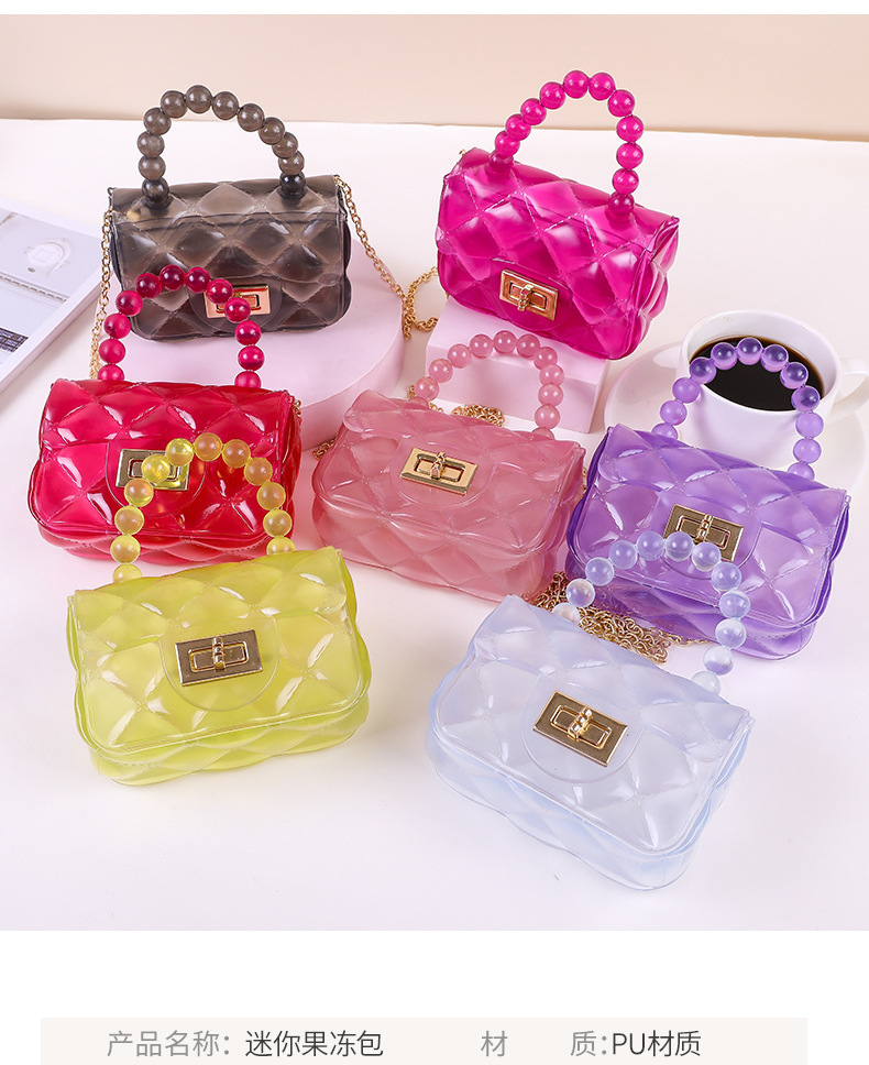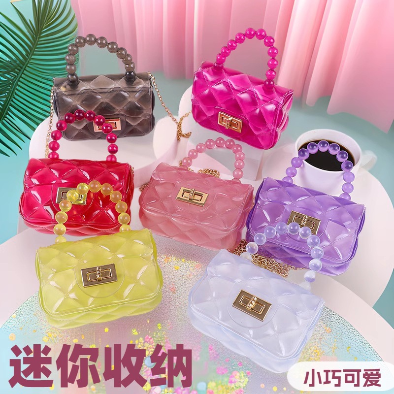 새로운 여성용 숄더백, 패셔너블한 진주 체인 크로스백, 공장 스팟 휴대용 미니 어린이 젤리백스토어 가기