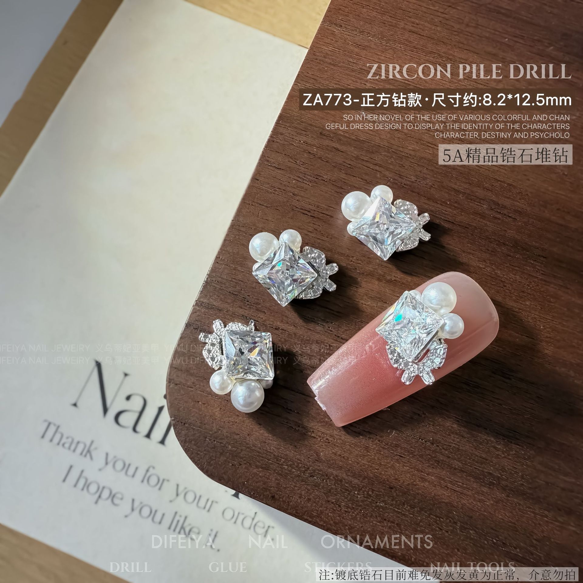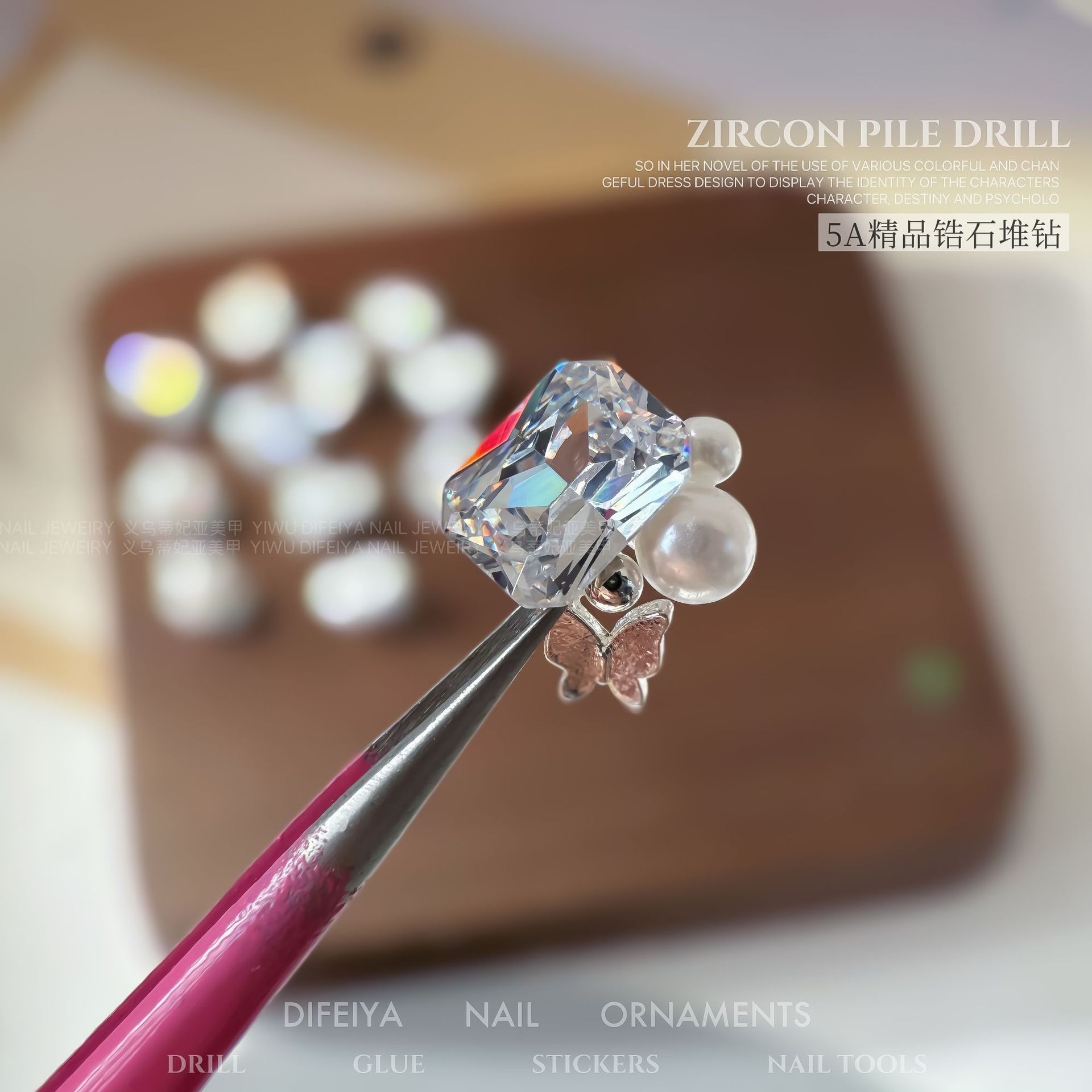 지르콘 더미 다이아몬드 네일 아트 쥬얼리 화이트 비둘기 계란 지방 스퀘어 다이아몬드 수제 더미 진주 나비 마무리 네일 드릴스토어 가기